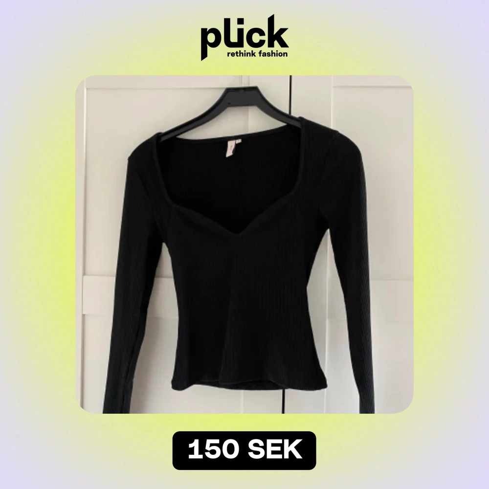 En svart långärmad ribbad topp med fin urringning från Nelly. Toppen är använd 1 gång.