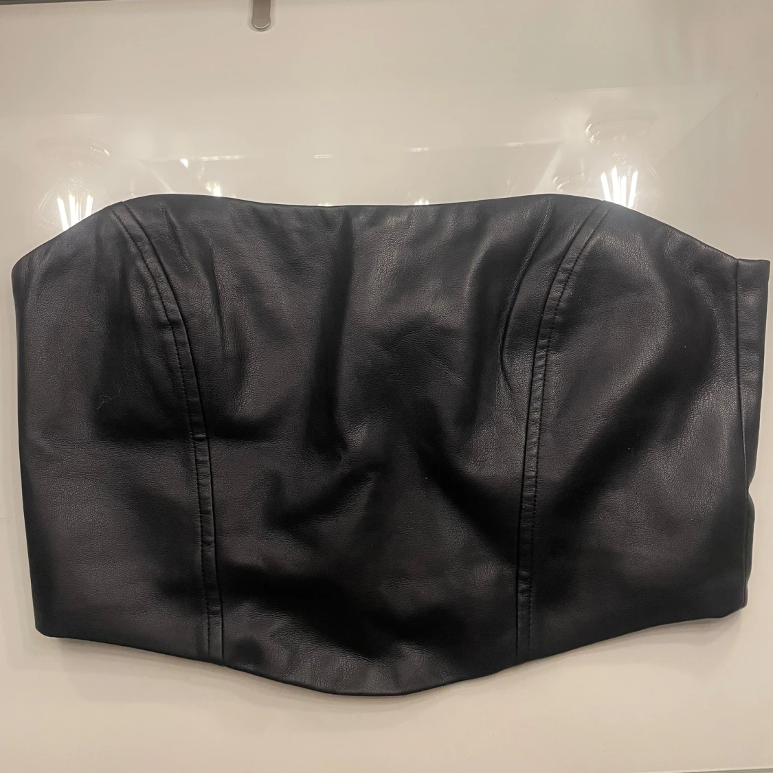 Snygg svart tubtopp från Nelly i skinnimitation. Toppen har en dragkedja bak för enkel på- och avtagning. Perfekt för en stilren och edgy look. Är i nyskick använd 1 gång