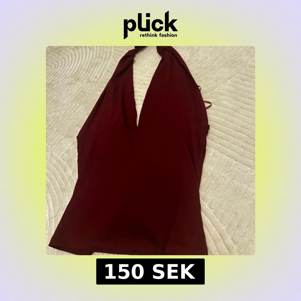 Säljer en vinröd halterneck topp med v-ringning och knyt i nacken.