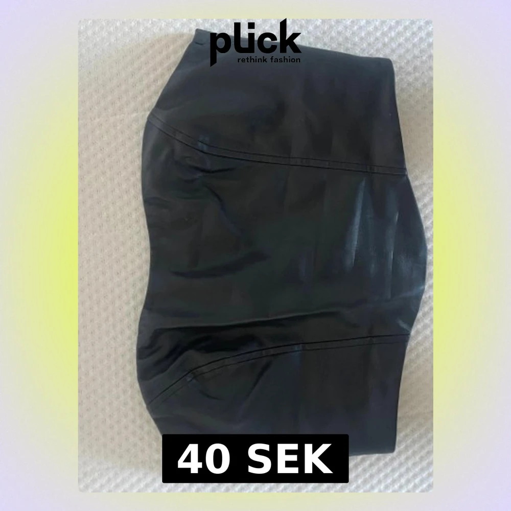 Snygg svart tubtopp i skinnimitation med dragkedja bak. Toppen har en bandeauformad passform och är perfekt för att skapa en edgy look. Materialet är mjukt och följsamt syntetmaterial som ger en cool känsla.