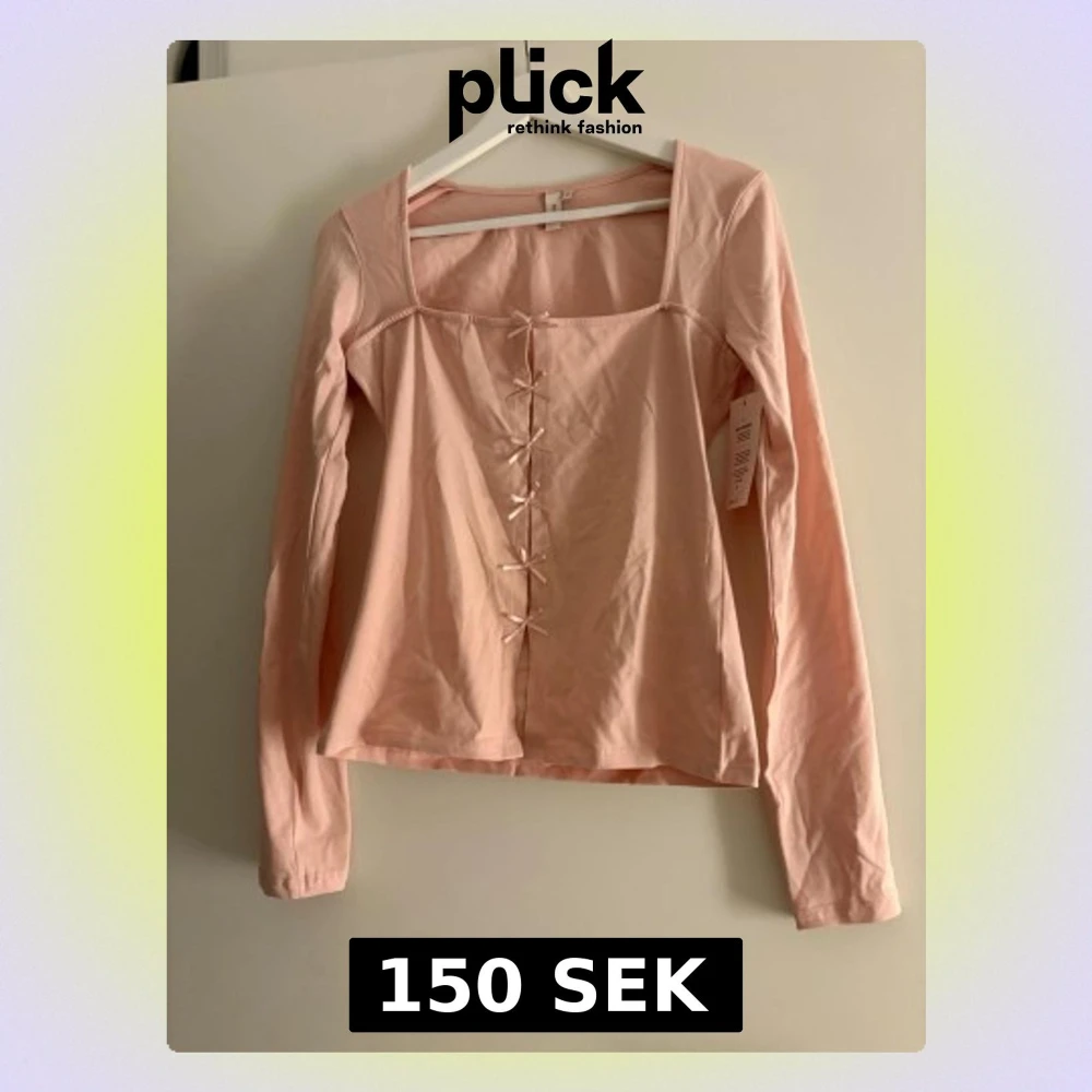 Säljer en ljusrosa långärmad topp från Nelly i storlek M. Toppen har fyrkantig urringning och dekorativa rosetter framtill. Materialet är mjukt och lätt bomull, perfekt för dig som gillar söta detaljer och enkel stil.