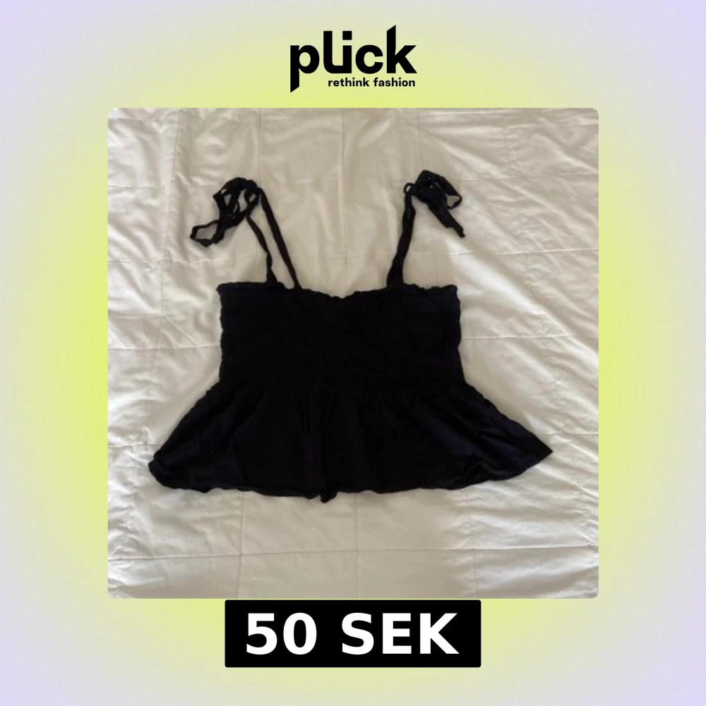 Svart linnetopp från Nelly med smockad överdel och volang nertill. Toppen har tunna axelband som knyts upptill för en söt och justerbar passform. Perfekt till varma dagar och enkel att styla med jeans eller kjol. Extra snygg om man stryker toppen innan användning😊