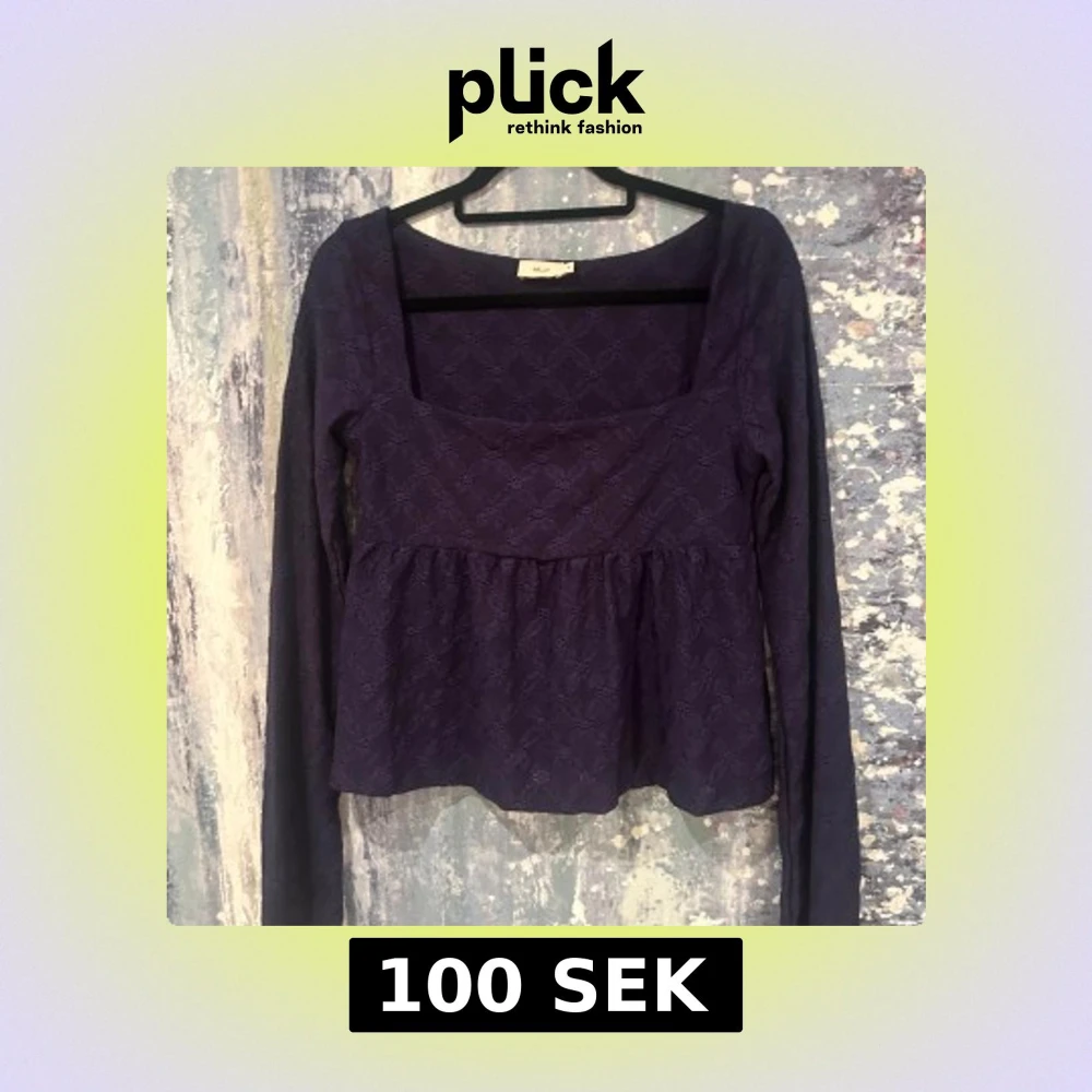 Säljer en mörklila blus med lång ärm och fyrkantig ringning. Toppen har ett spetsmönster och en lätt utställd passform nedtill. Aldrig använt 🫶🏽🫶🏽