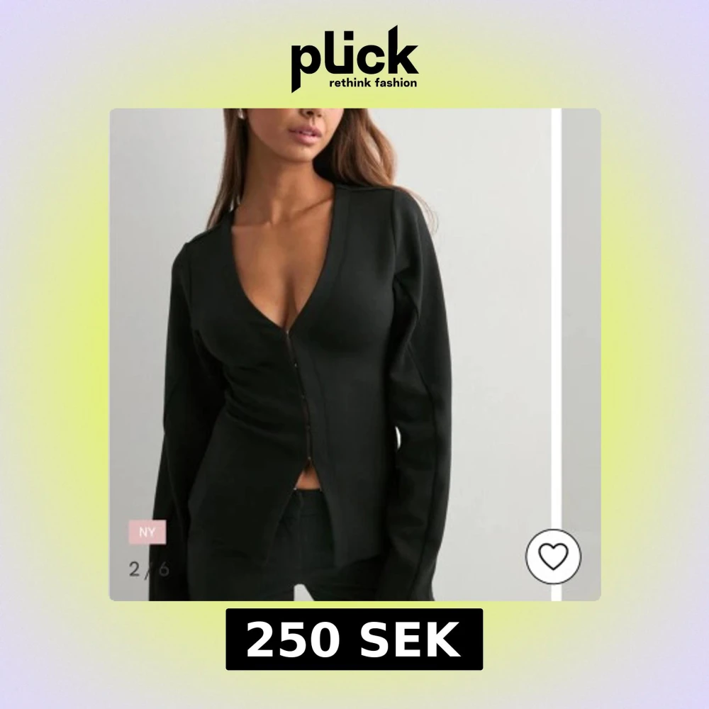Svart tröja från Nelly i storlek M. Den har en enkel och clean design med v-ringad hals och knappar framtill. Långärmad och passar perfekt när du vill ha en stilren look. Materialet känns mjukt och skönt mot huden. Knappen längst ner sitter lite löst men går fortfarande att knäppa igen