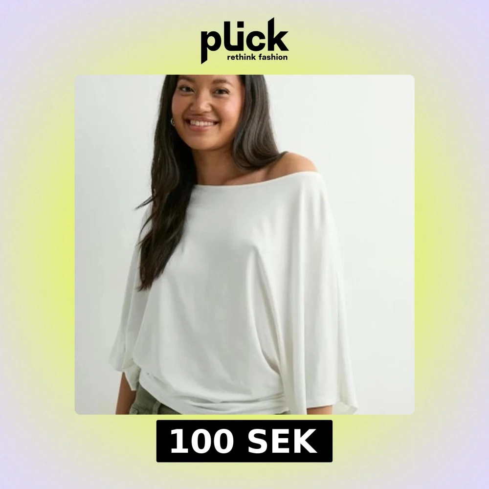 Säljer en vit offshoulder topp med lös passform och vida trekvartsärmar. Toppen har en snygg drapering och faller mjukt över axeln för en chill och trendig look. Perfekt att styla med jeans eller kjol för en avslappnad vibe.