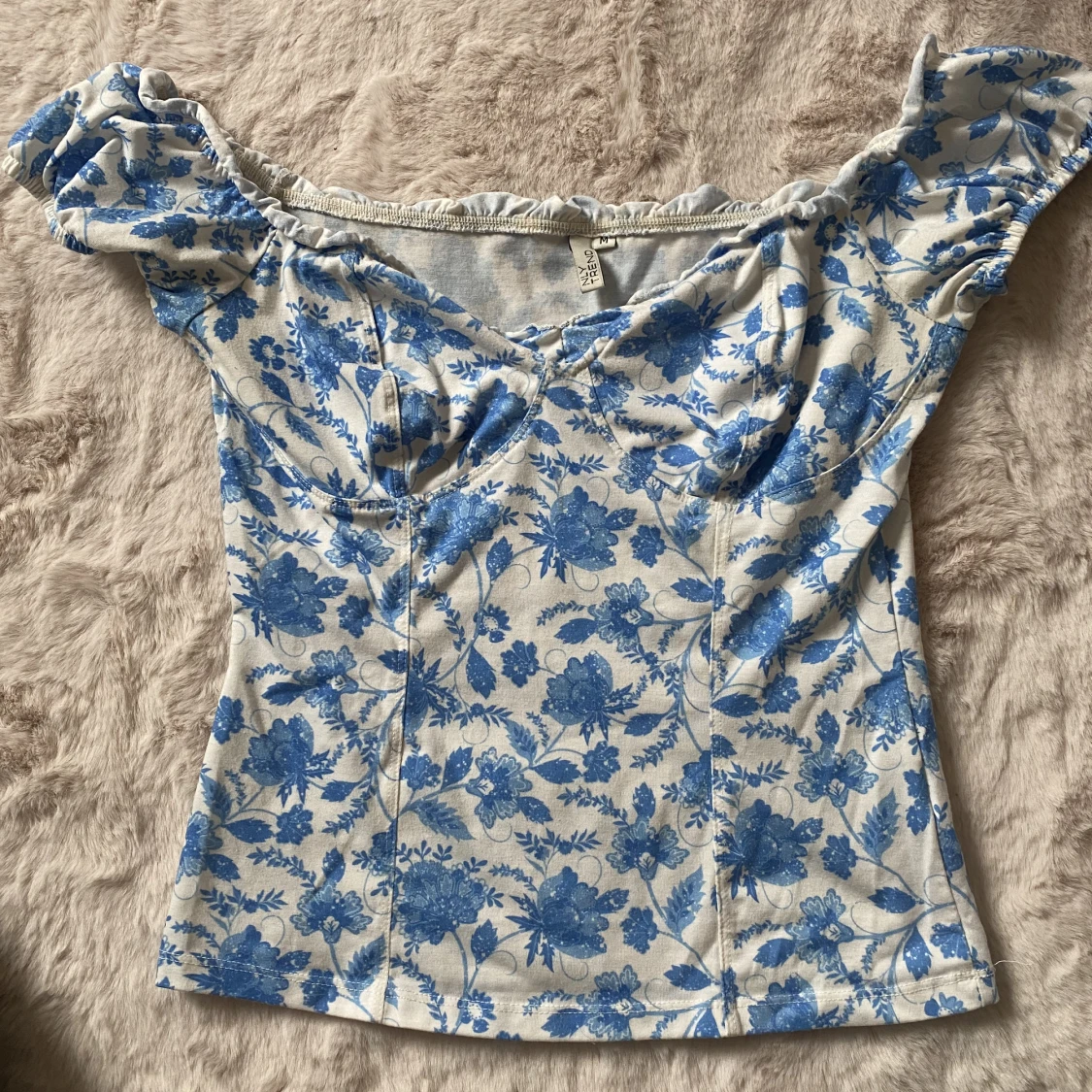 En jättesöt topp från Nelly i storlek S men passar även M. Off shoulder men går att ha axelbanden på som ”vanligt” också 🫶🏼🫶🏼