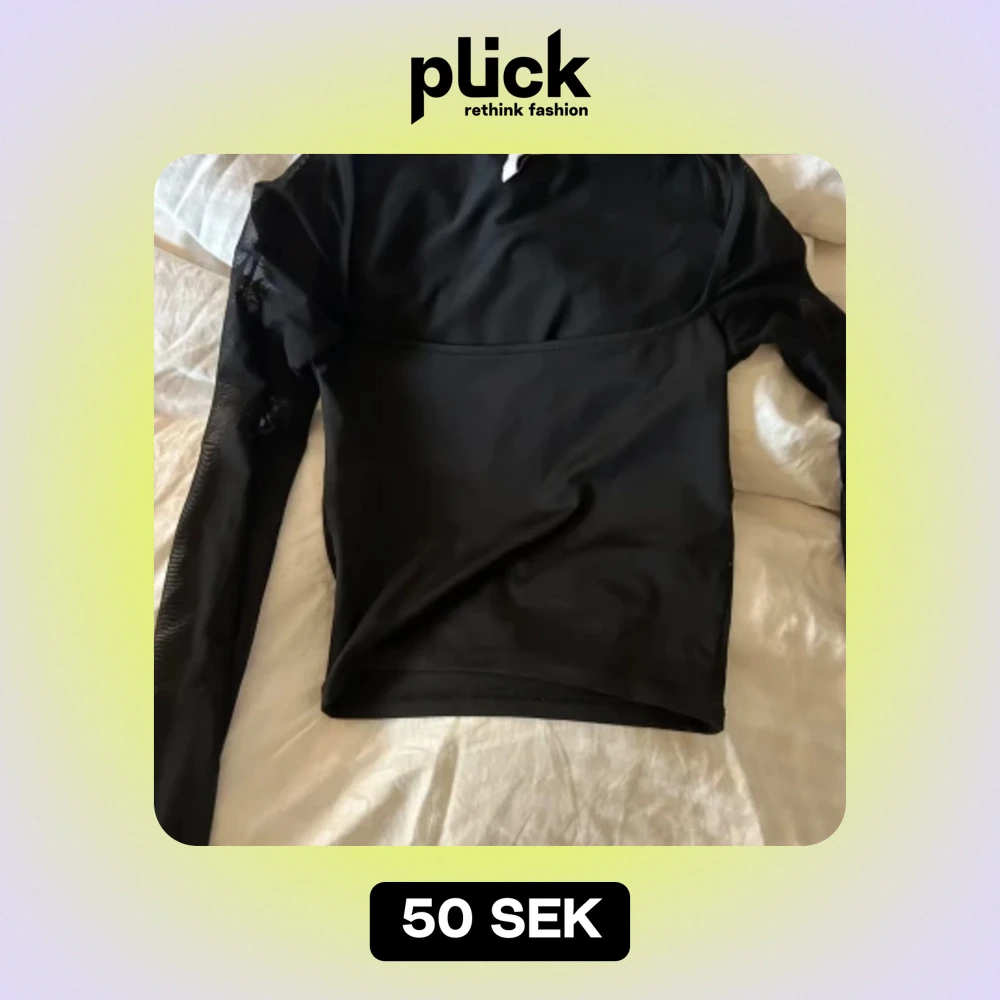 Svart topp med mesh ärmar, använd 1 gång därav mycket bra skick!
