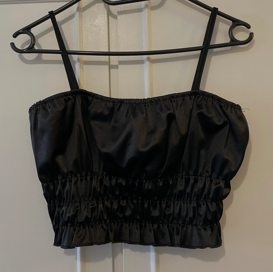 Croppad satin topp från Nelly i storlek XS. Använd ett fåtal gånger, som nyskick!💘