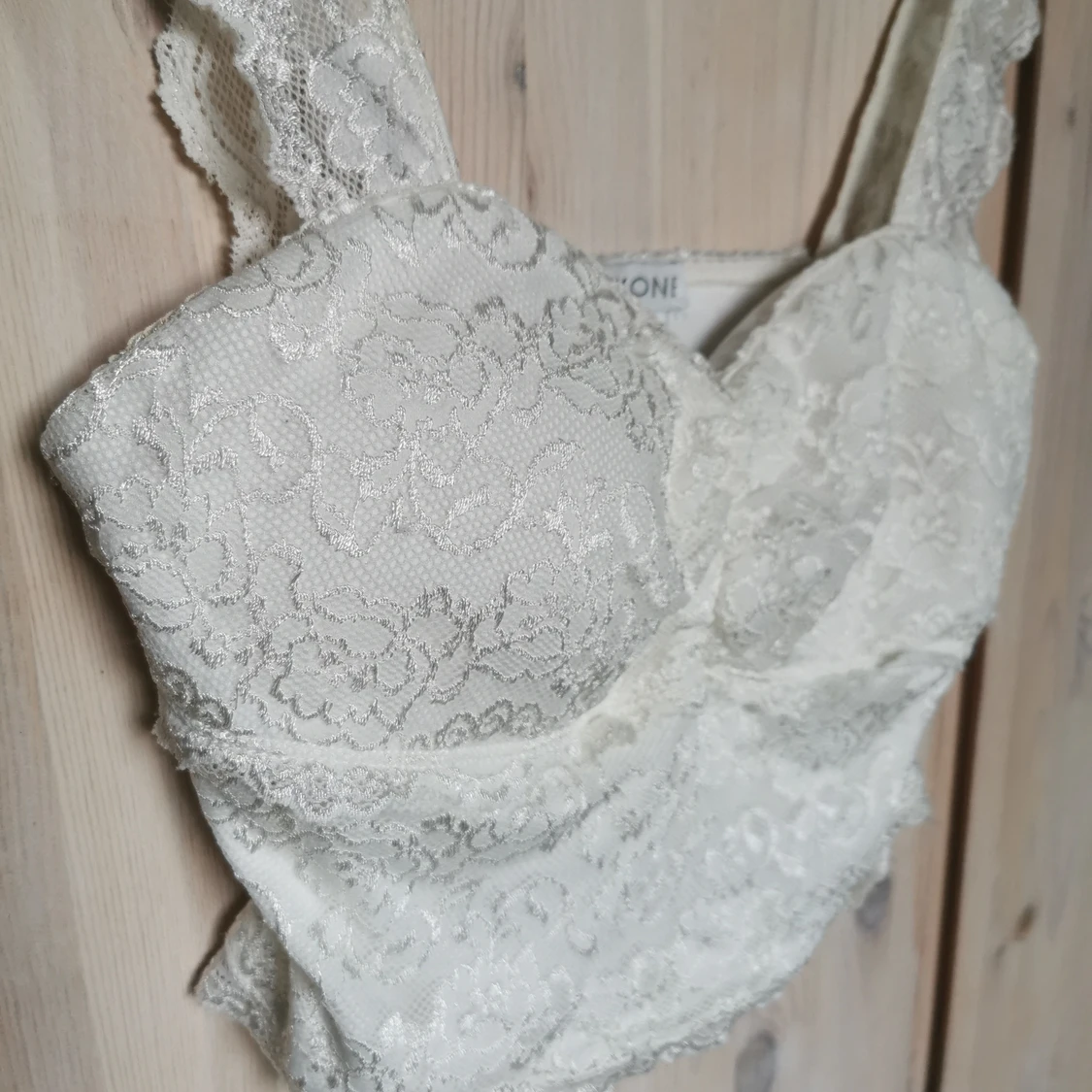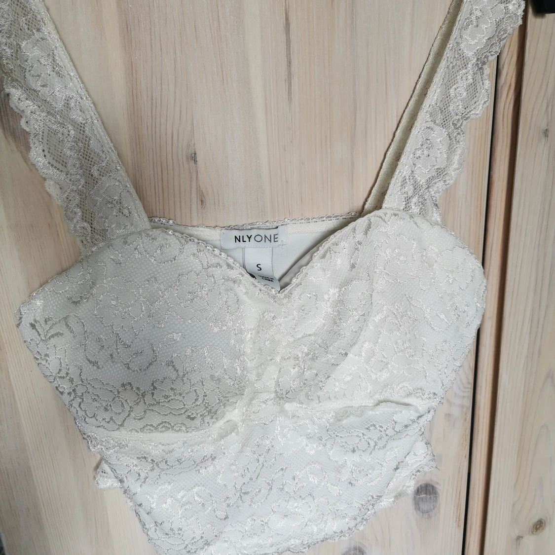 Vit spetstopp från nelly one strl S. Köparen står för eventuell frakt, skickar med billigaste alternativet eller annat enligt önskemål ☺️