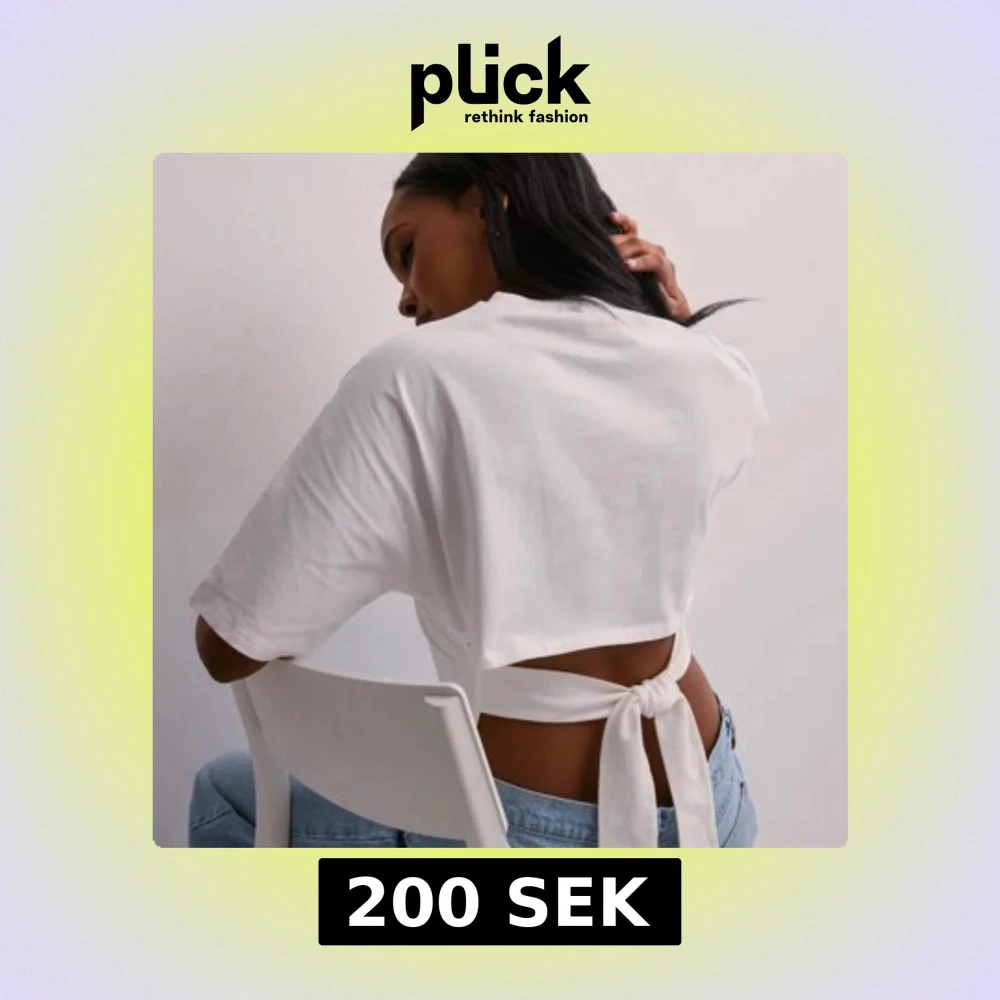 Säljer en stilren vit topp med korta ärmar och knytning i ryggen. Toppen har en croppad design som ger en modern känsla.
