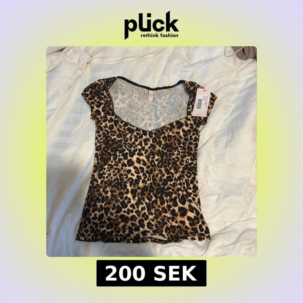 Snygg topp från Nelly med leopardmönster i bruna och svarta toner. Modellen har korta ärmar, v-ringad hals med svart spetskant och figurnära passform. Perfekt för dig som gillar leopard mönster oandvänd med prislapp på då den inte kommit till andvändning❤️❤️