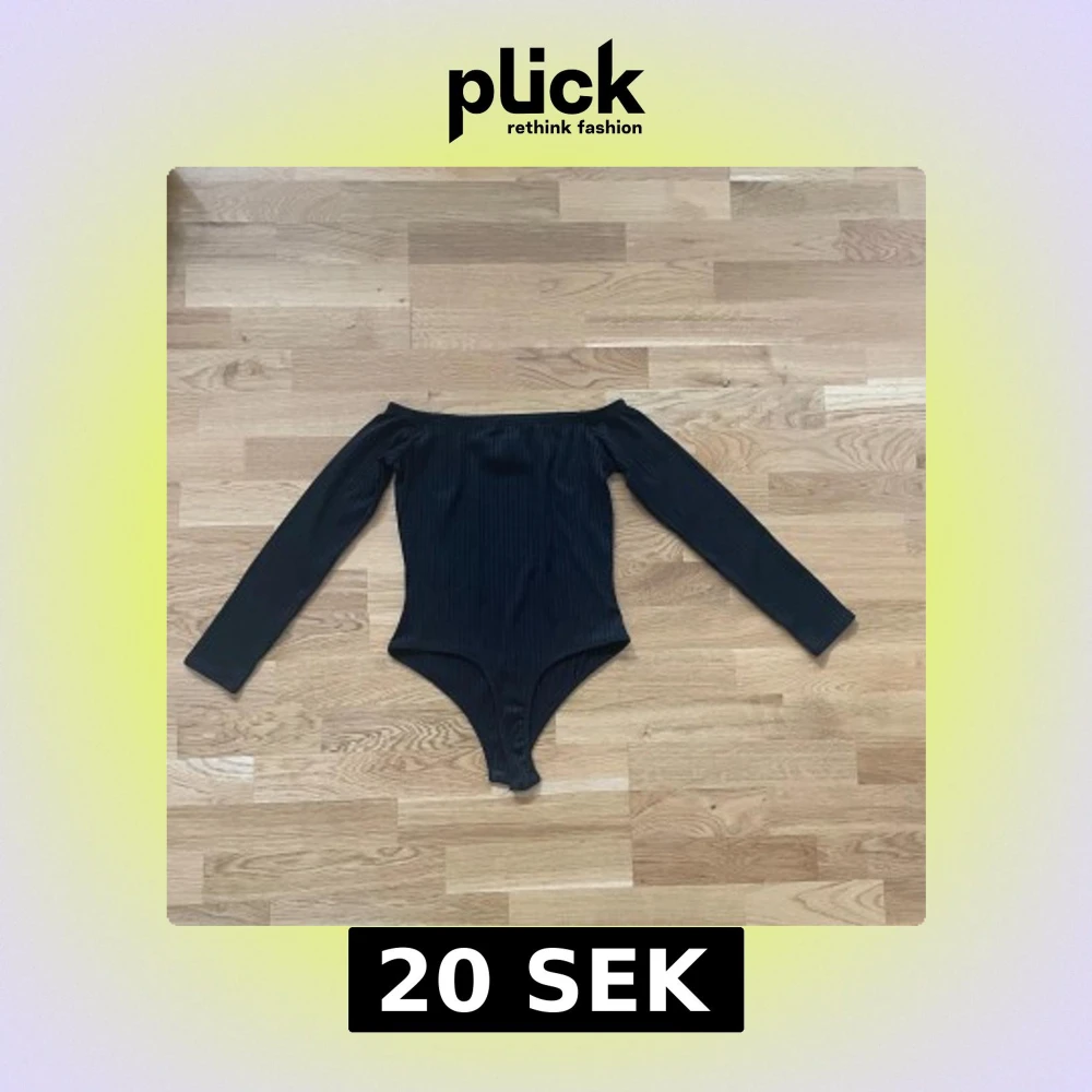 Snygg svart body med ribbad struktur och offshoulder-design. Långärmad modell som sitter tight och framhäver figuren. Perfekt att styla med jeans eller kjol för en trendig look.