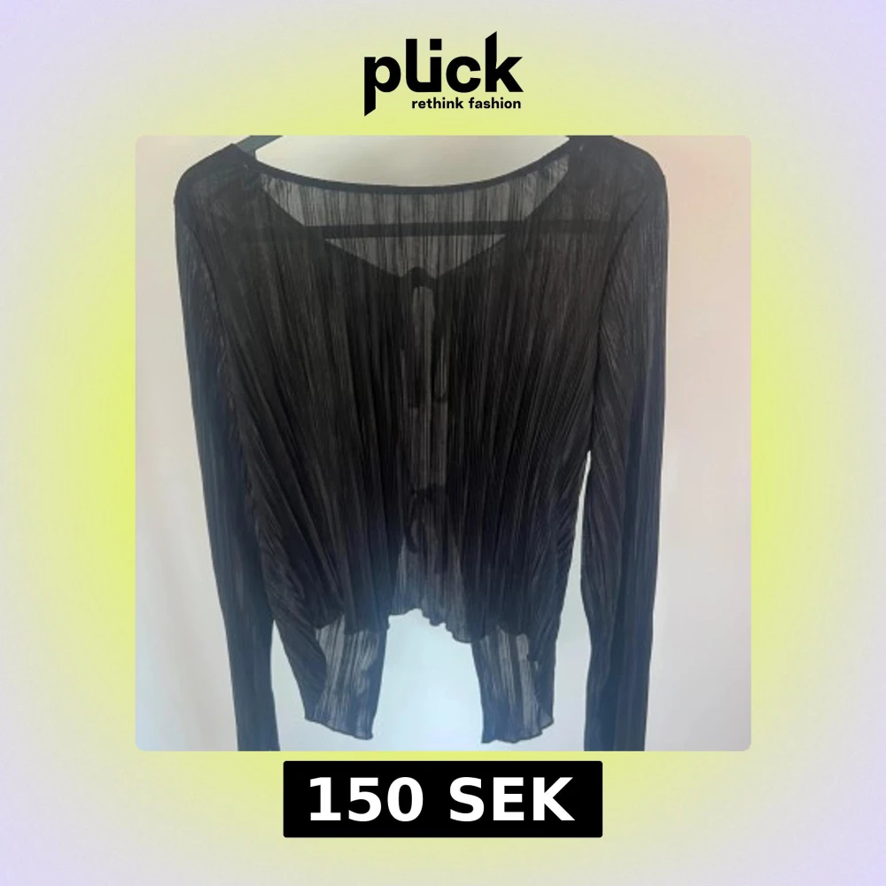 Säljer en svart plisserad topp med långa ärmar och knyt baktill. Toppen har en croppad passform och är tillverkad i ett tunt, syntetiskt material som ger en luftig känsla. Perfekt att styla med höga jeans eller kjol.🤍 använt fåtal gånger i storlek S