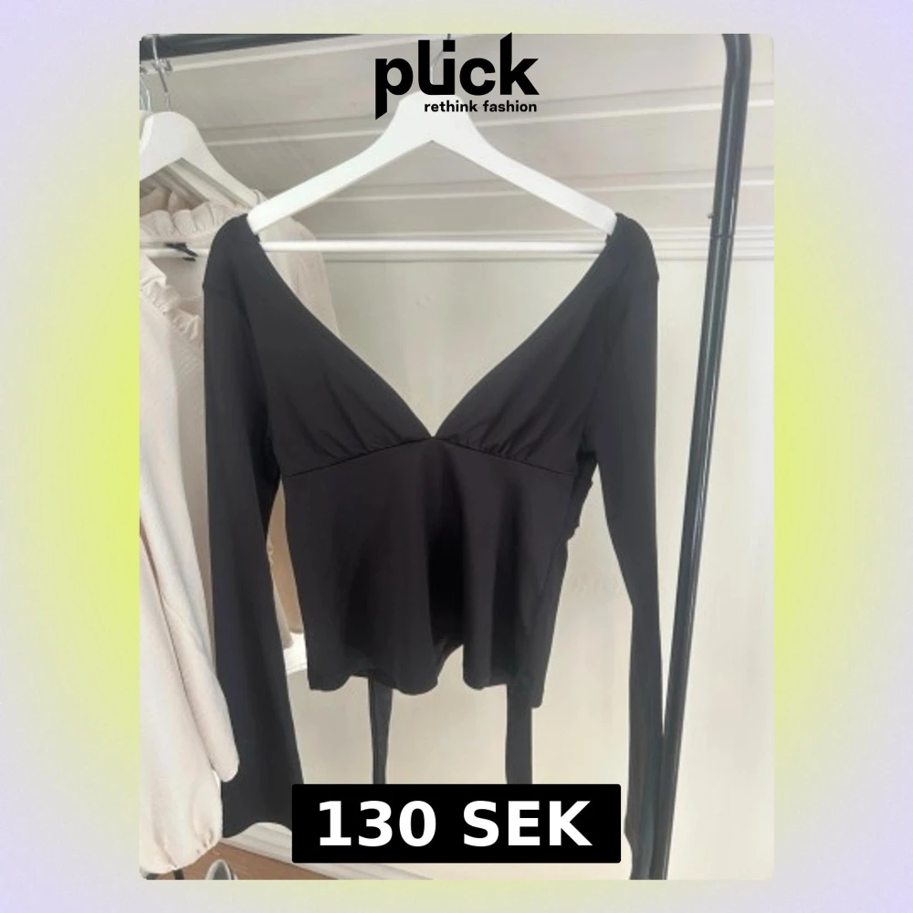 Snygg svart topp från Nelly med djup v-ringning och långa ärmar. Toppen har knytband i midjan för en bra passform och är tillverkad i ett mjukt, stretchigt material. Med rosett i ryggen💗🤩 Använd fåtal gånger!