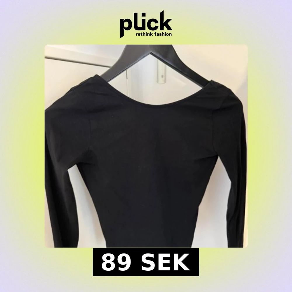 Säljer en svart långärmad topp med snyggt djup, öppen rygg. Tight passform och rundad halsringning framtill. Perfekt att styla med jeans eller kjol för en clean look. Gjord i mjuk bomull som sitter skönt mot kroppen. Har ej kommit till användning!