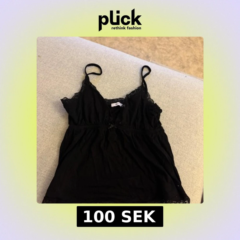 Svart linne från Nelly med tunna axelband och v-ringning. Toppen har fina spetsdetaljer längs urringningen och nederkanten samt en liten rosett framtill. Mjuk och lätt bomullskänsla, perfekt för en chill och snygg look.