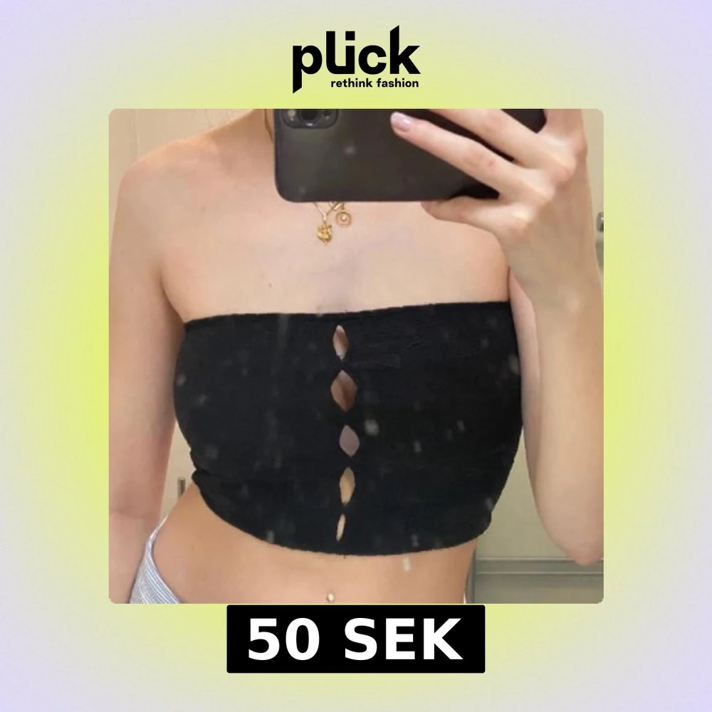 Snygg svart tubtopp med dekorativa utskärningar framtill. Perfekt för en trendig look. Passar bra till både jeans och kjol.