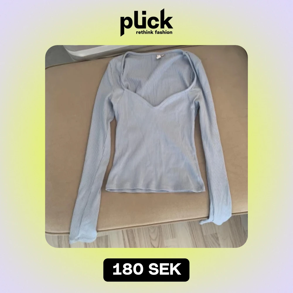 Långärmad ribbad topp, fin ljusblå färg. Använd men i bra skick.