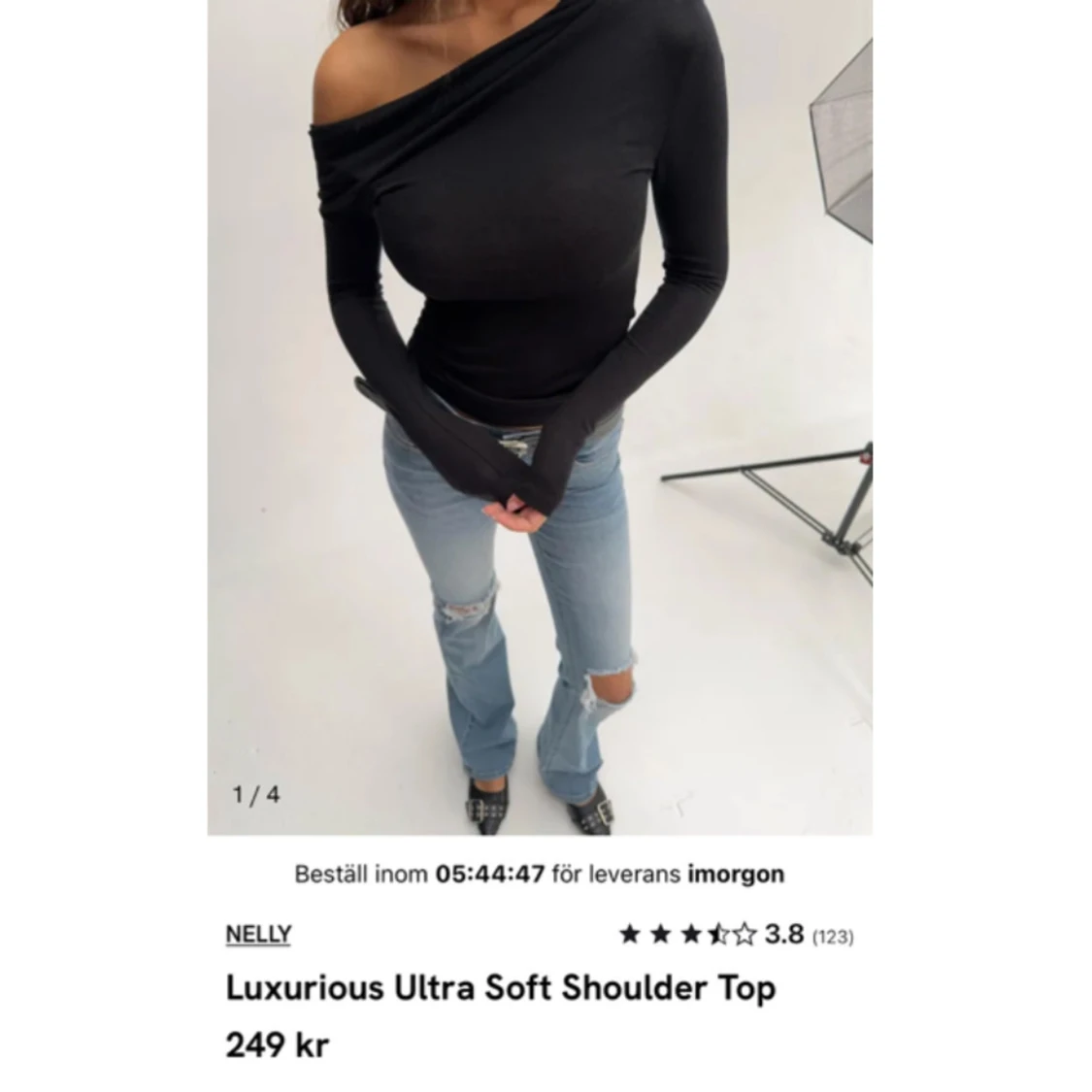 Otroligt snygg tröja med en hängande ärm över axeln storlek S har prislappen kvar helt ny bara testad och fel storlek. ❤️😍