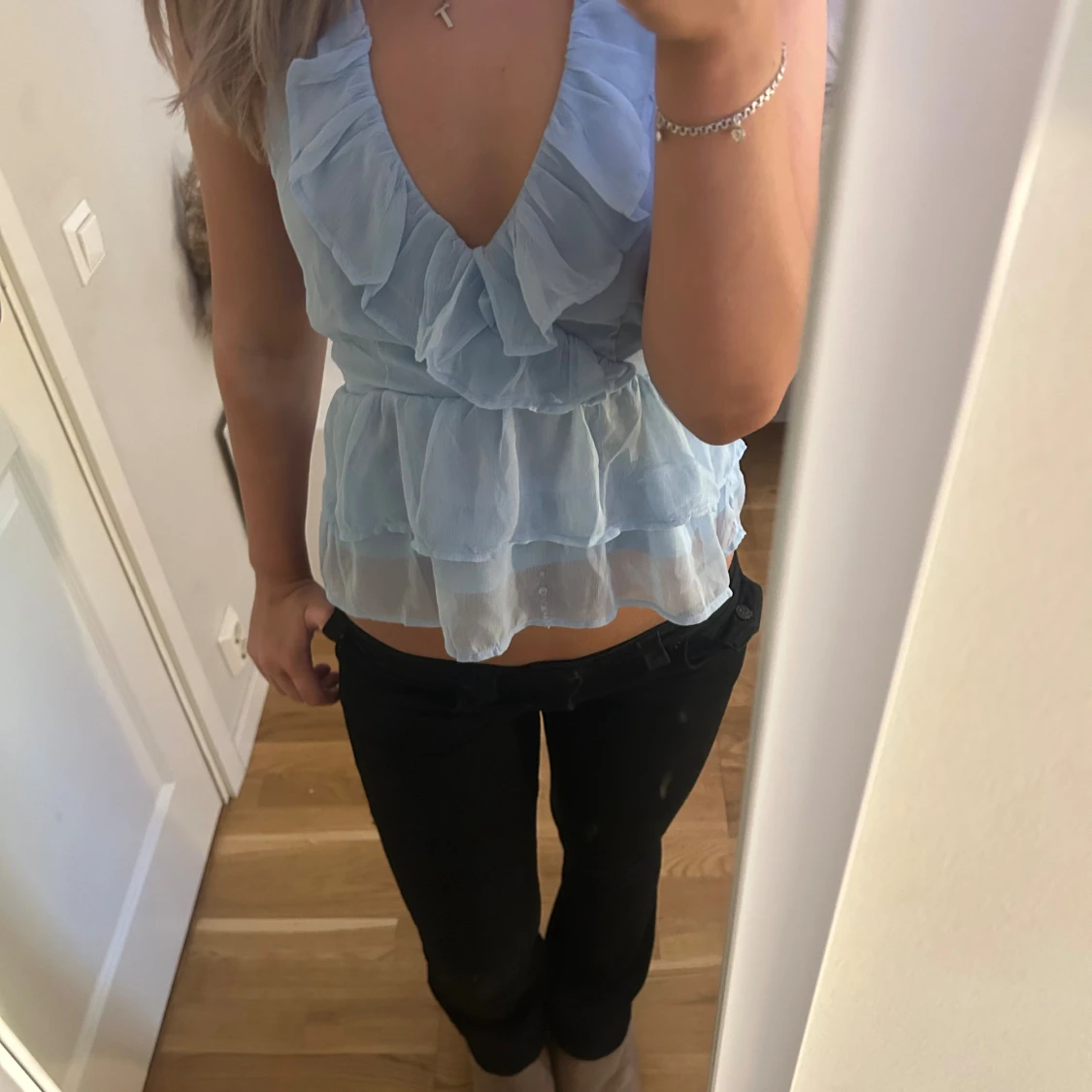 Supersöt ljusblå topp från Nelly med volanger och v-ringning. Passar till många tillfällen 💞