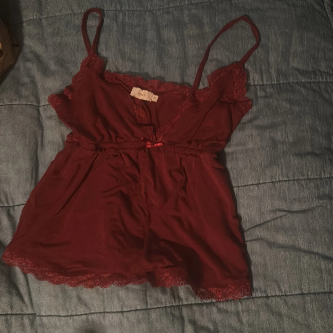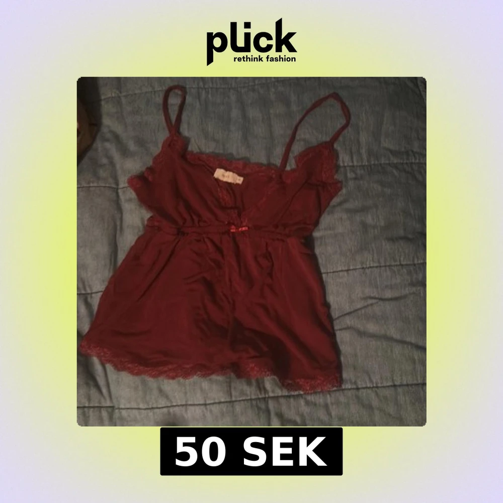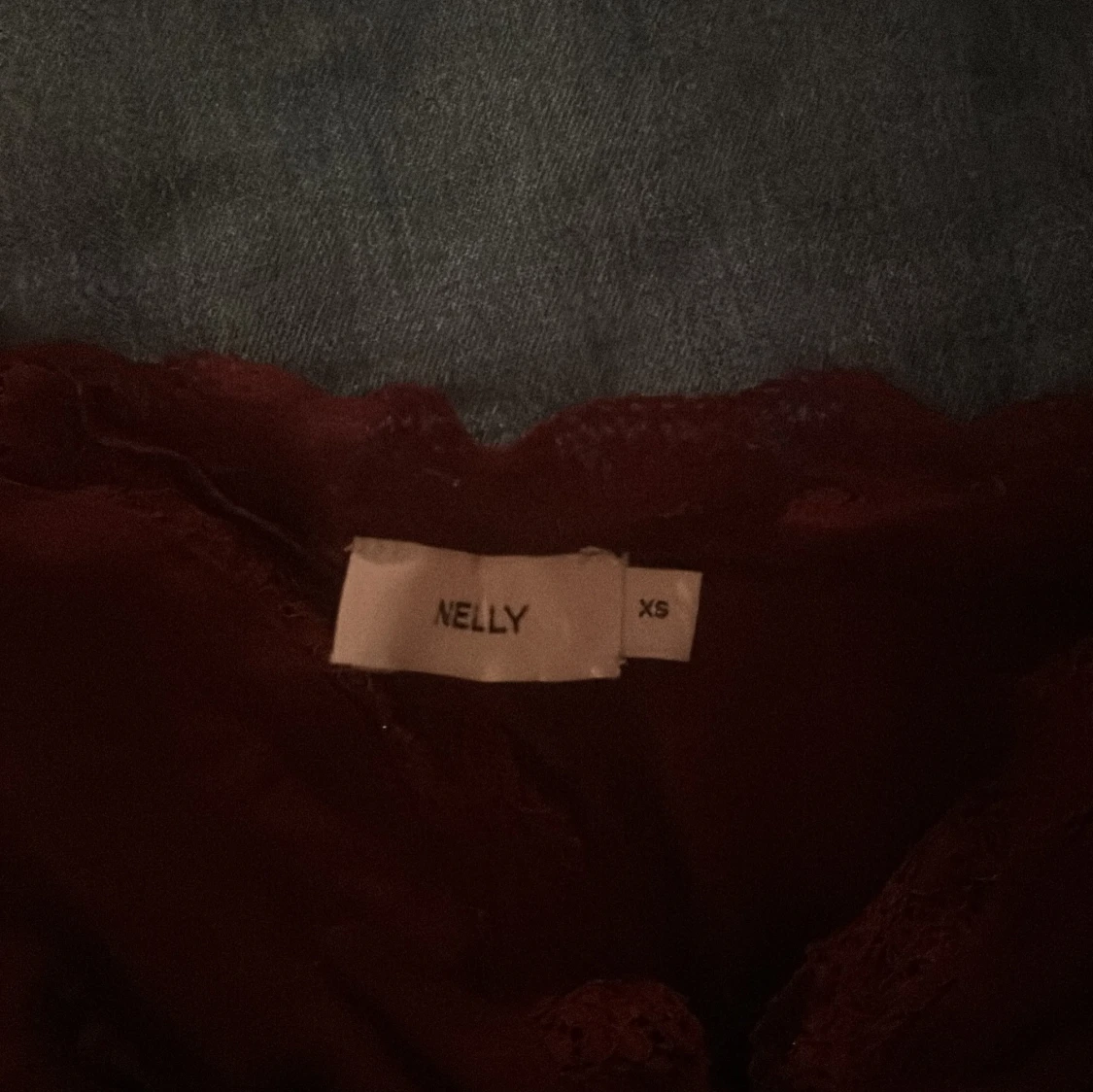 Supersöt vinröd linnetopp från Nelly med tunna axelband och spetsdetaljer längs kanterna. Passar skit bra som fest topp eller något annat. Säljer pga att ja intt använder den.