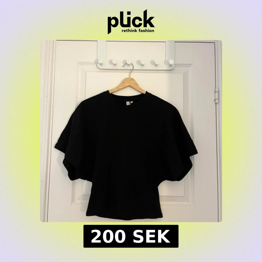 En svart topp med rund halsringning och extra vida, korta ärmar. T-shirten har en rak passform och är tillverkad i ett mjukt material som känns skönt mot huden. Perfekt för en avslappnad och stilren look. Endast testad
