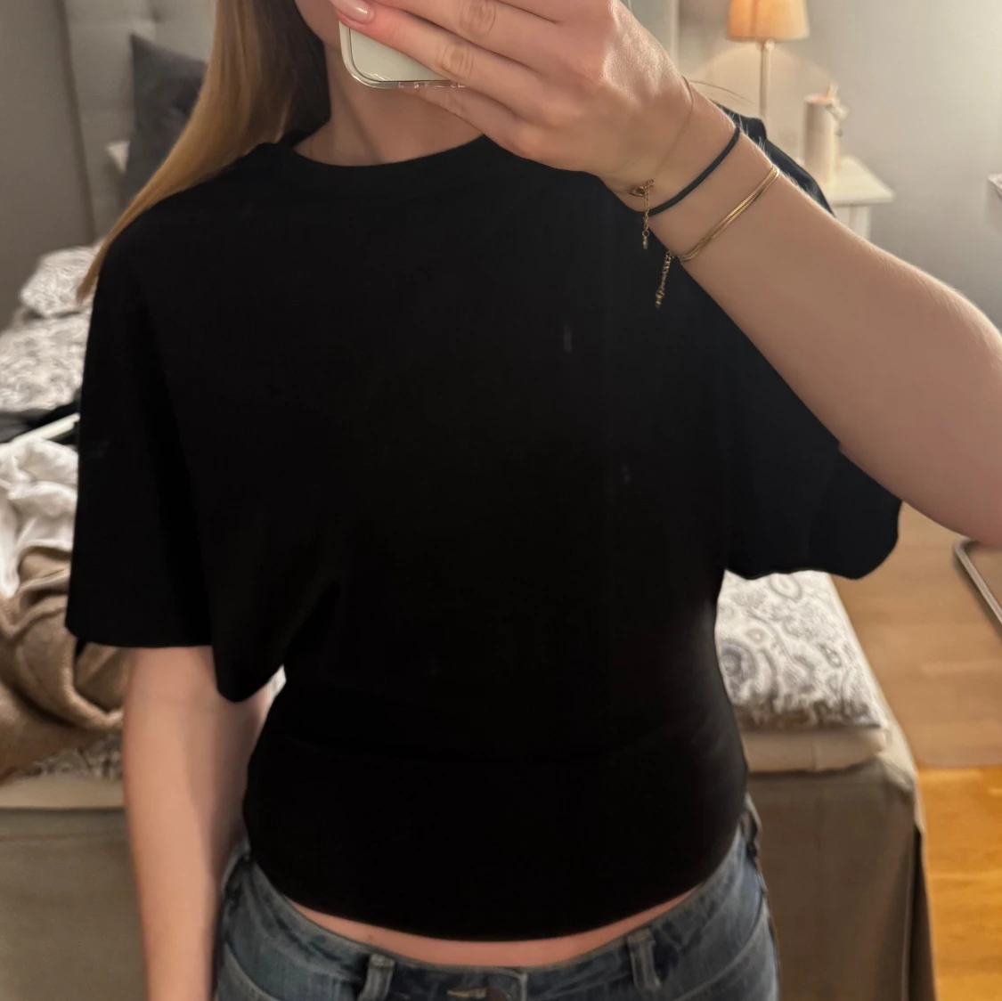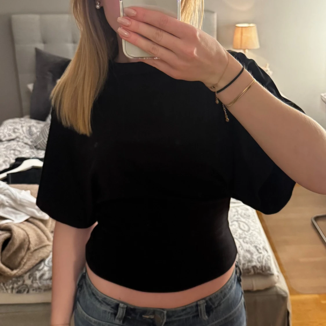 Toppen kommer från Nelly och köptes i våras. Den är i storlek XS och har en tight pass form i midjan och lösare upptill vid ärmarna och bysten. Den är lätt att både klä upp eller ned. På baksidan är det en söm som har gått upp, super lätt att fixa om man kan sy. Men annars så synd det inte speciellt mycket🤎