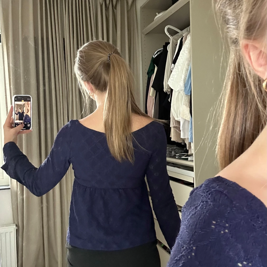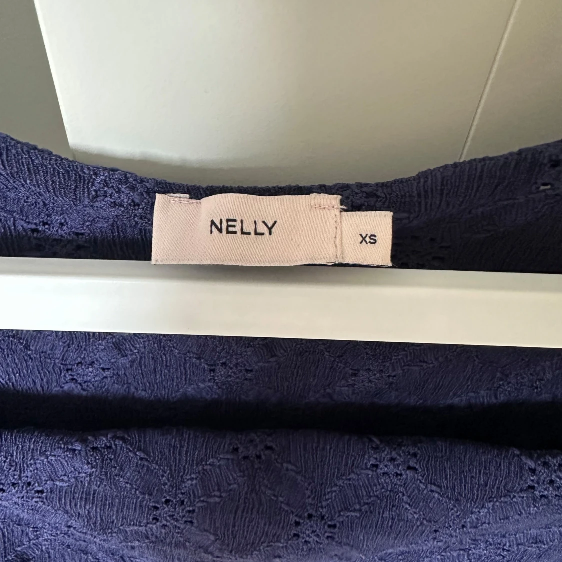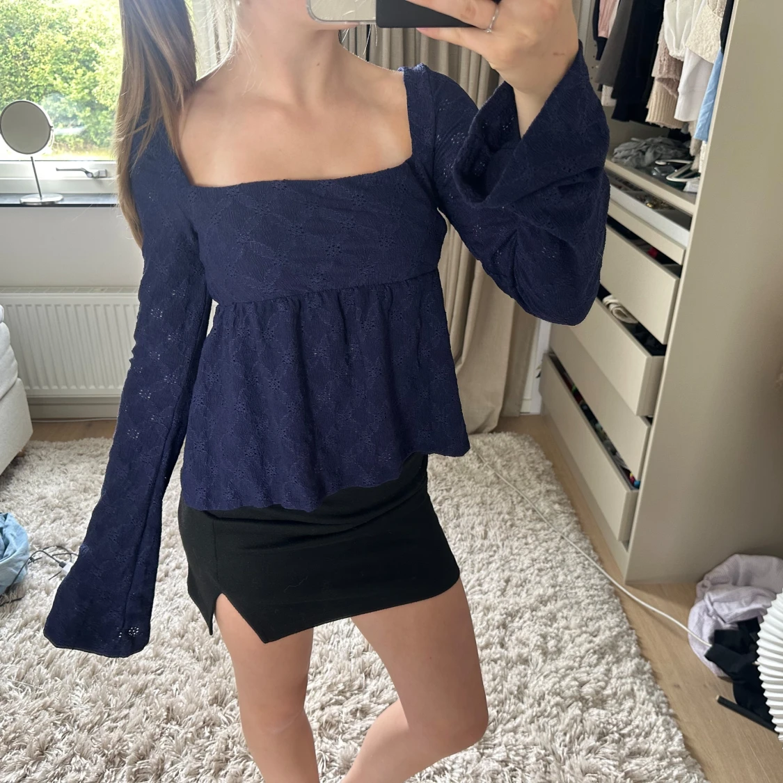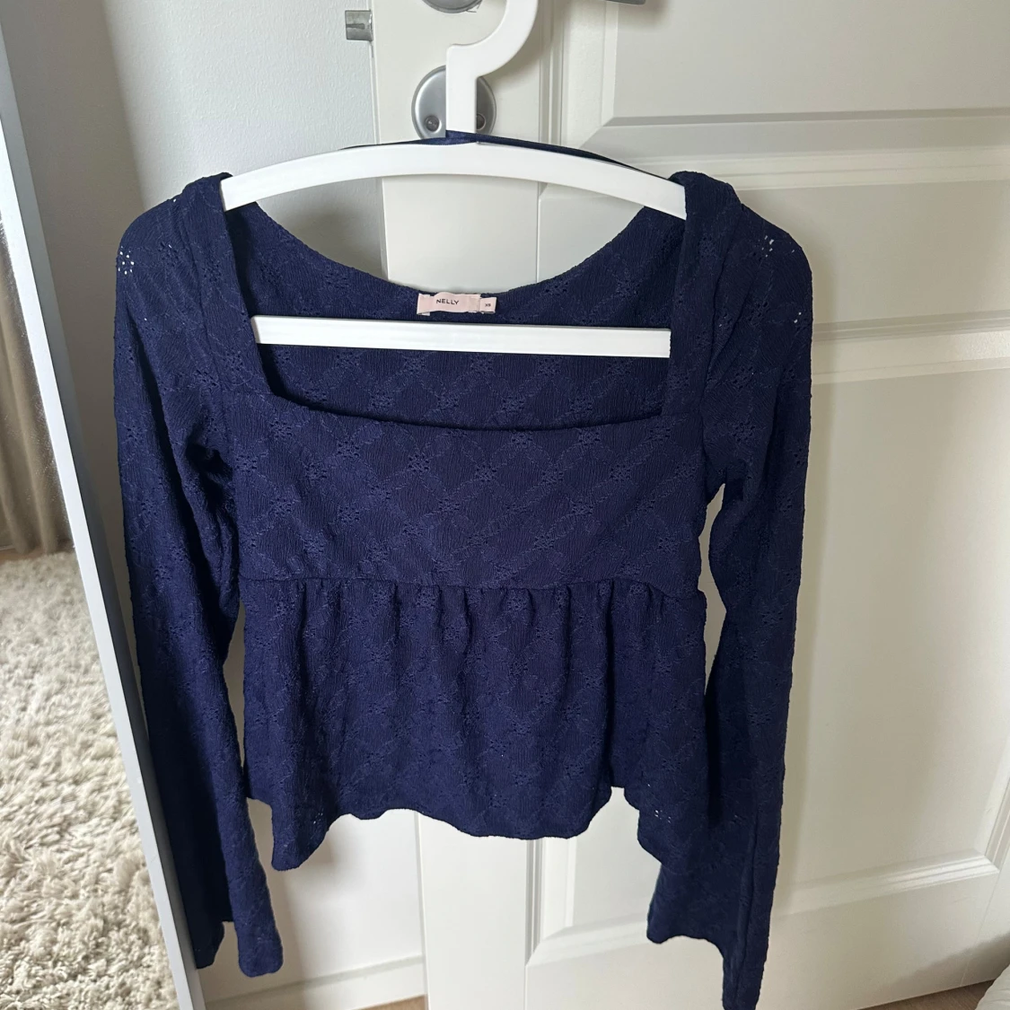 Supersöt mörkblå blus från Nelly i spets med lång ärm och fyrkantig ringning. Modellen har lätt utställd midja och vida ärmar för en trendig look. Perfekt att styla med kjol eller jeans för en chic vibe.