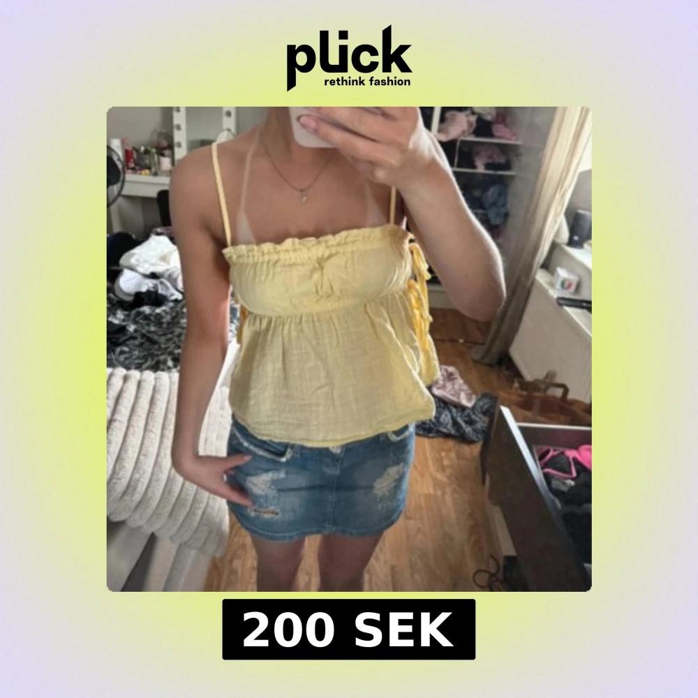 Supersöt ljusgul linnetopp med smala axelband och volangkant upptill. Toppen har en luftig passform och knytband i sidan som ger en extra detalj. Perfekt för varma dagar och ger en fräsch sommarkänsla.