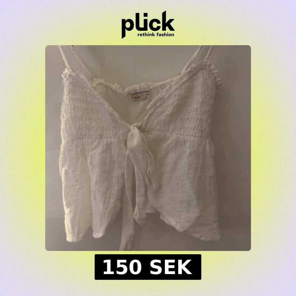 Supersöt vit linnetopp från Nelly i storlek XS. Toppen har smala axelband, smock upptill och en snygg knytning framtill. Materialet är lätt och luftigt, perfekt för varma dagar. Volangdetaljer längs kanten ger en extra gullig touch.