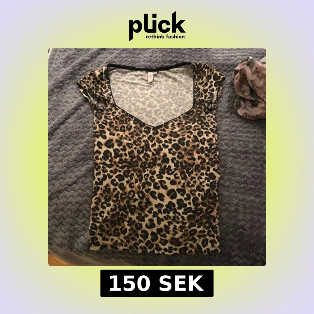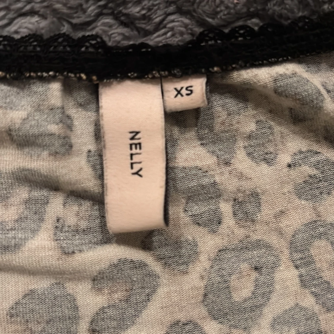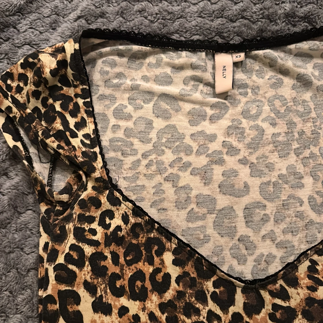 Säljer en snygg leopardmönstrad topp från Nelly i storlek XS. Toppen har v-ringning med svart spetskant och är kortärmad. Färgerna går i beige, brunt och svart och materialet känns mjukt och stretchigt, troligen polyester eller bomull.