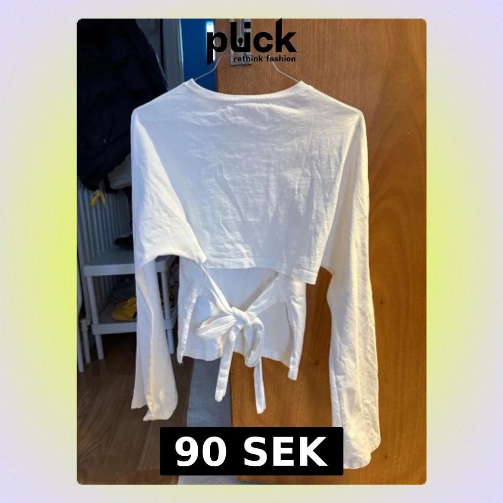 Vit långärmad topp med snygg knytning i ryggen. Har en croppad passform