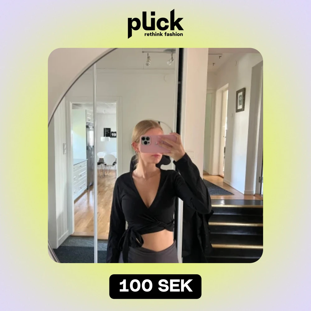 Säljer en snygg svart omlottopp med långa ärmar. Toppen har en djup v-ringning och knyts i midjan för en tight passform. Perfekt för både vardag och fest!
