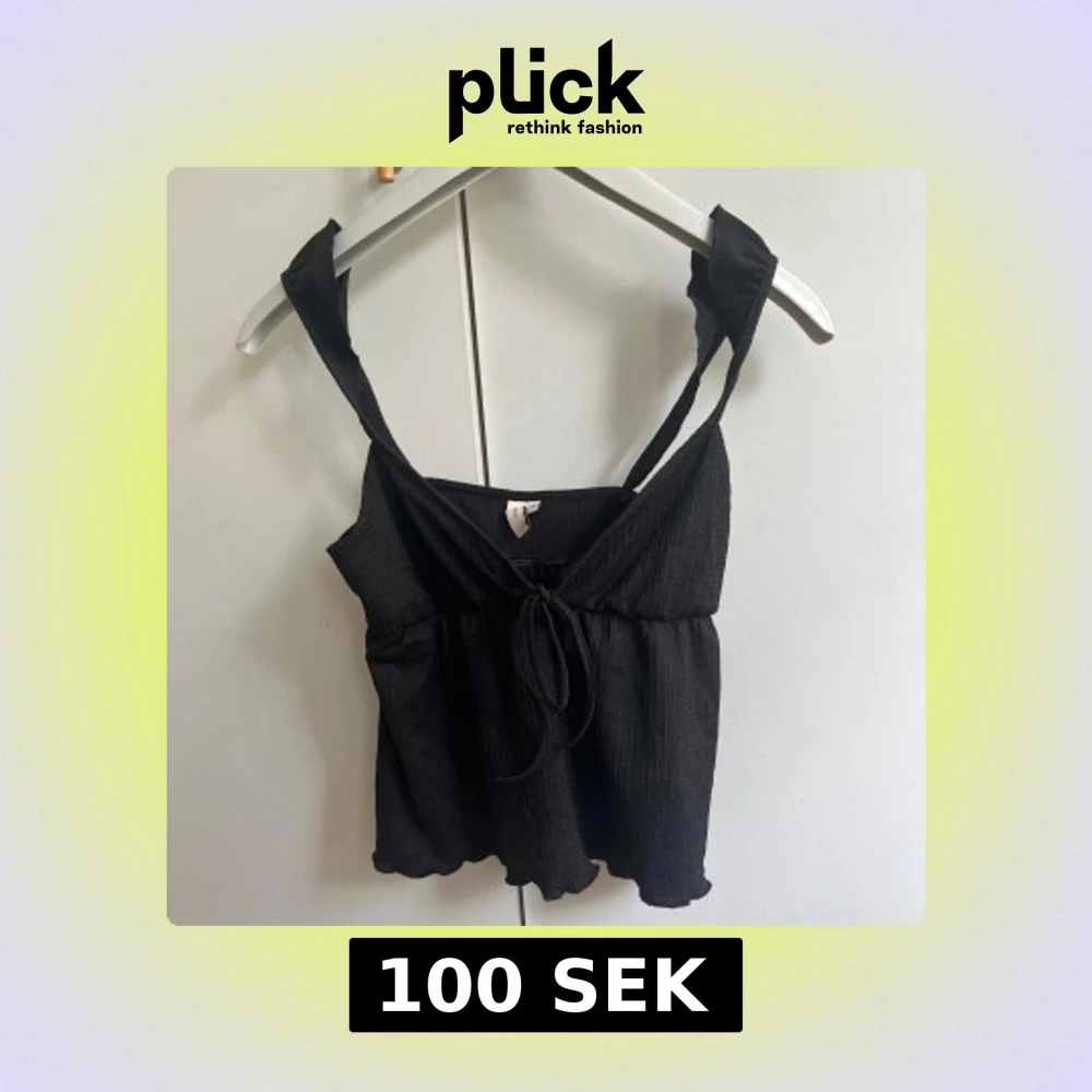 Helt o använd.Svart linnetopp från Nelly i storlek XS. Toppen har breda axelband, knytning framtill och lätt rynkad struktur.