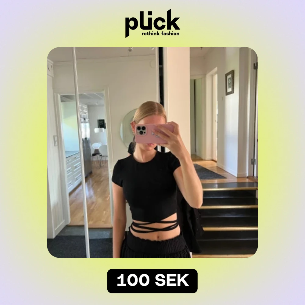 Säljer en snygg svart topp med korta ärmar och coola knytband runt midjan. Perfekt för en utekväll eller fest! Toppen är tight och ger en stilren look.