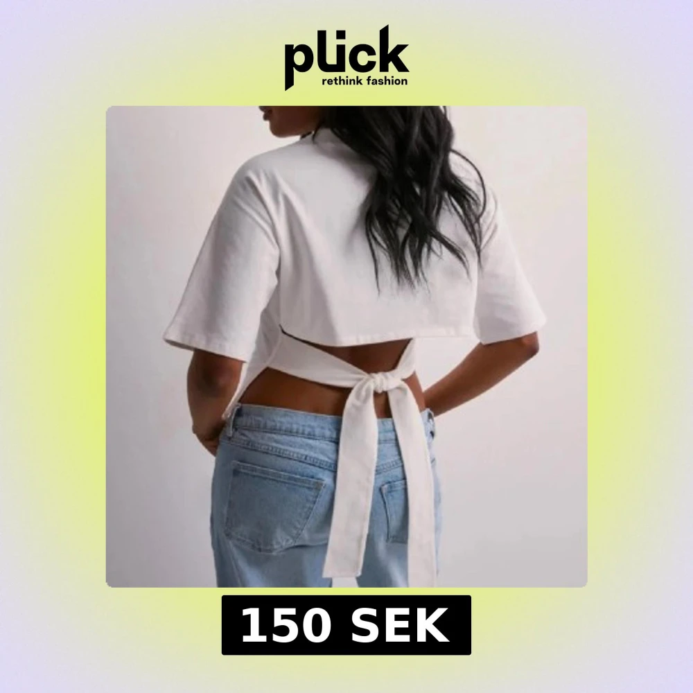 Snygg vit croppad topp med korta ärmar och knytband i ryggen. Slutsåld på Nellys hemsida och endast använd en gång.