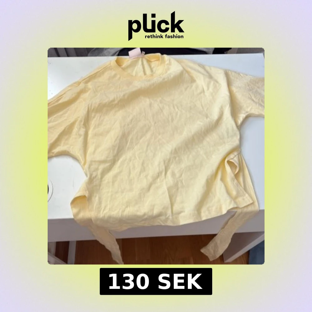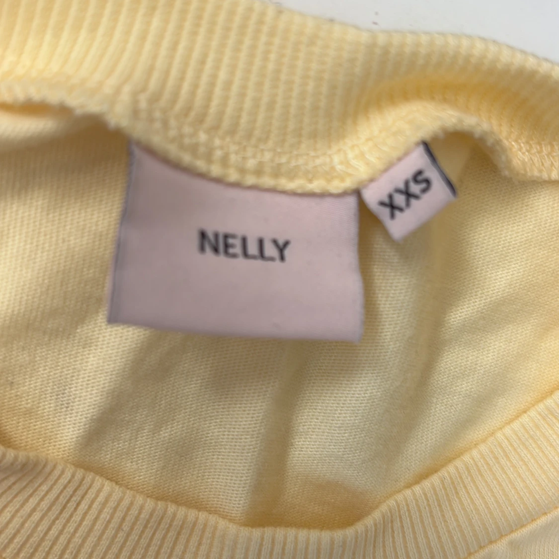 Säljer en ljusgul topp från Nelly i storlek XXS. Toppen har rund halsringning, långa ärmar och knytband i sidorna för en snygg detalj. Tillverkad i mjuk bomull, perfekt för vår och sommar. Enkel och fräsch stil som passar till mycket.