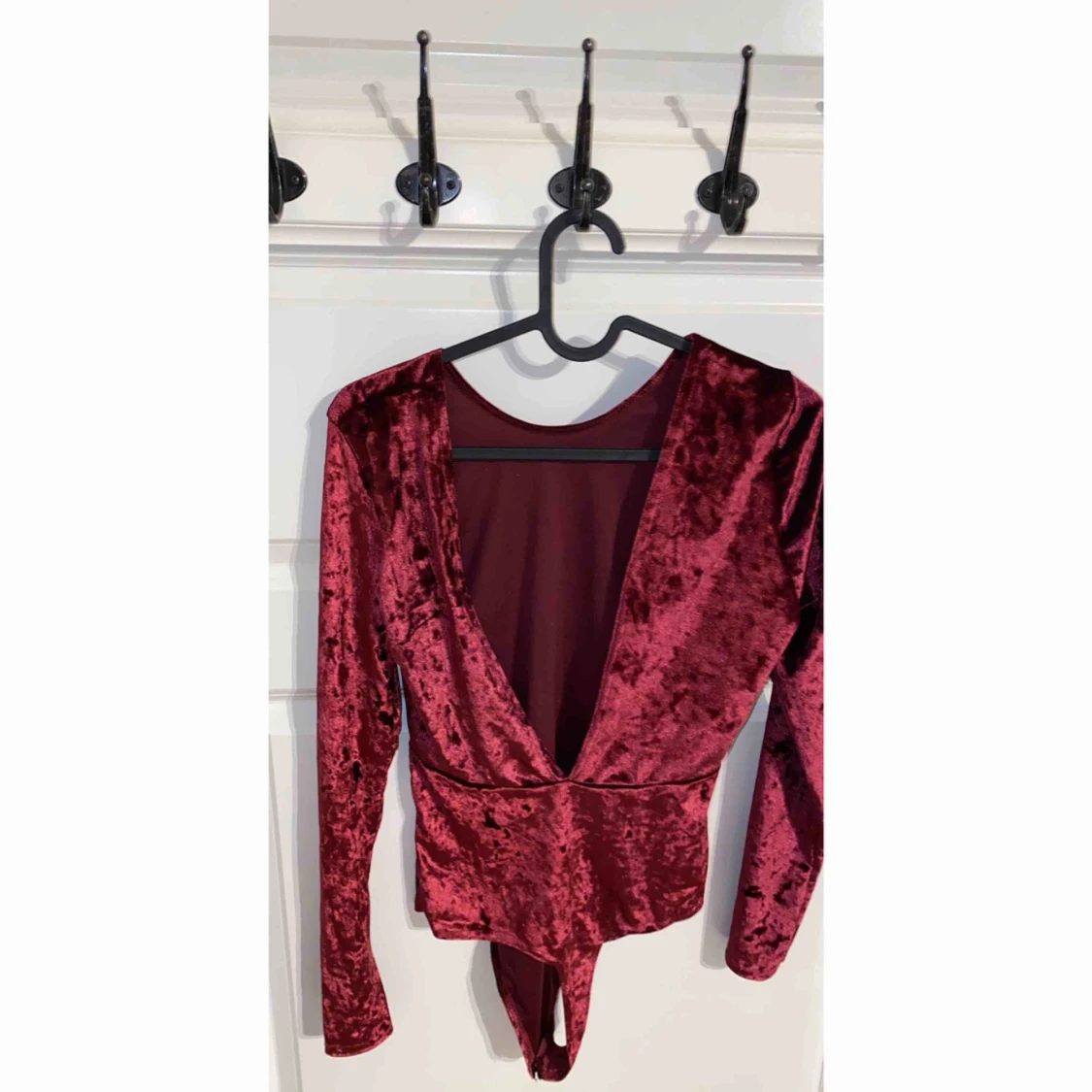 Vinröd sammet body med låg urringning i ryggen. Bara testad