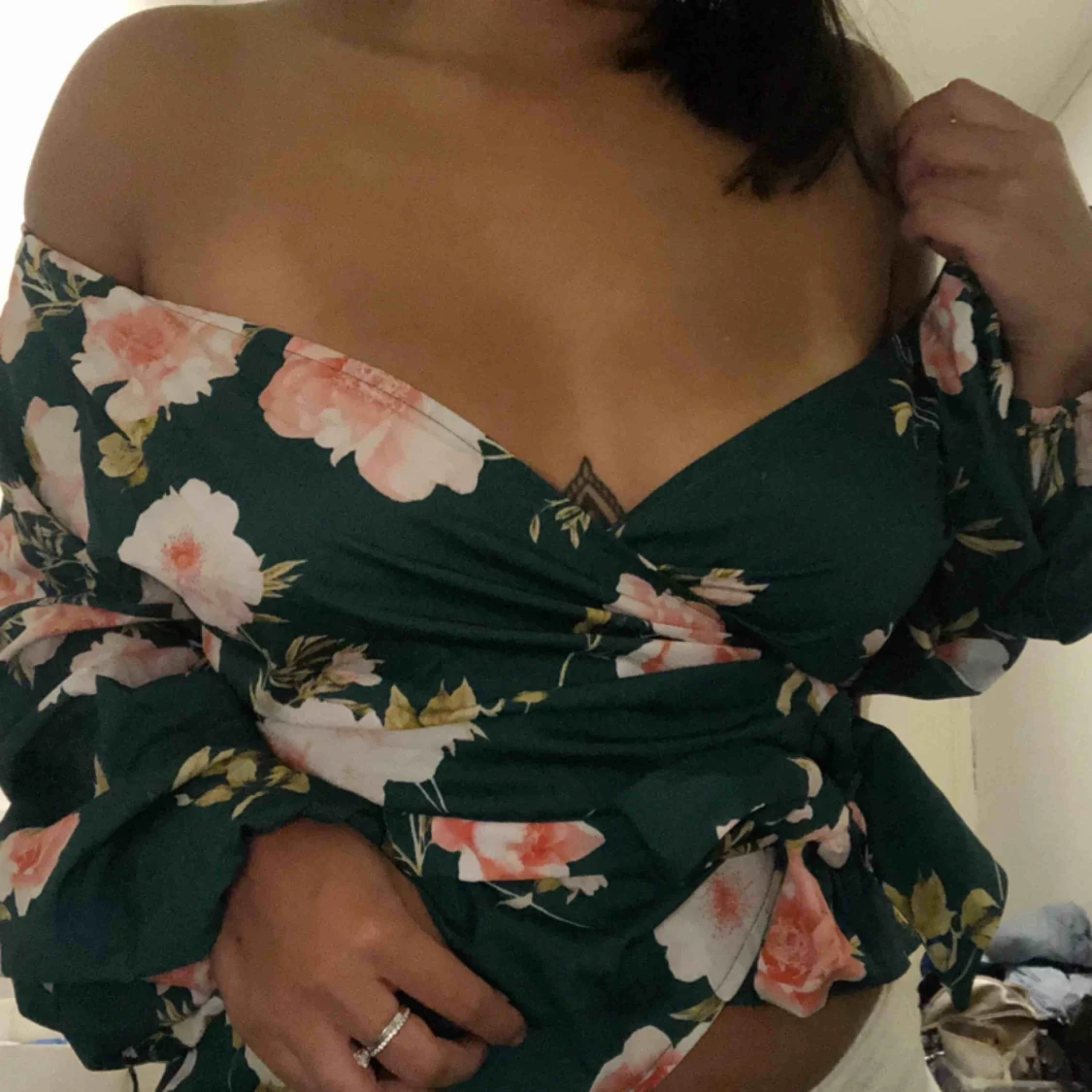 Blommig offshoulder blus från Nelly.com i storlek 34. Använt endast 1 gång. Köparen står för frakten 🌸