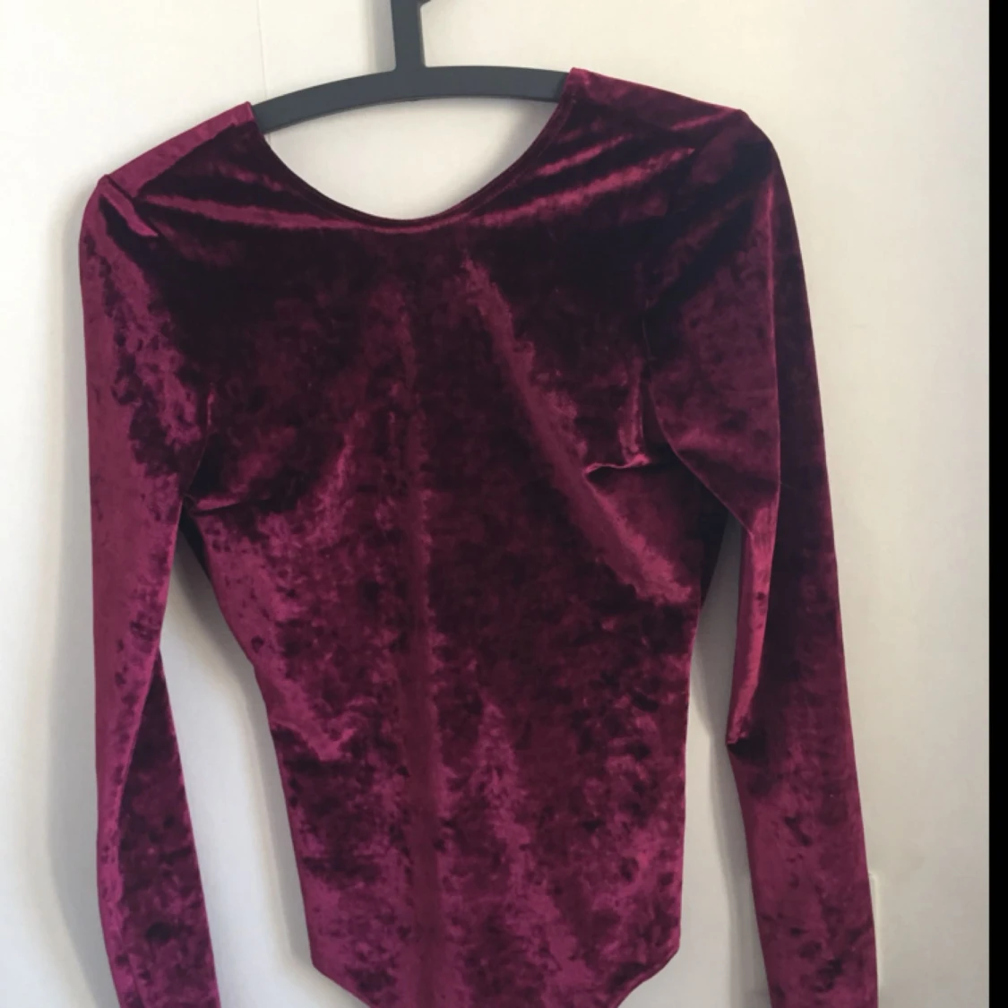 Röd sammetsbody från Nelly. Djup i ryggen. Aldrig använd och prislappen sitter kvar! Storlek XS. Köparen står för frakten 💫
