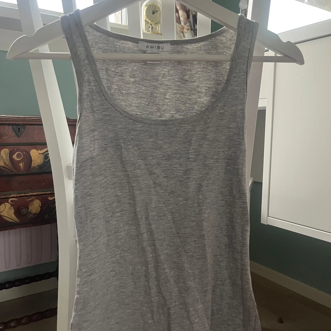 Säljer en enkel och stilren grå linnetopp från Amisu (New yorker). Perfekt för varma dagar eller som lager under en tröja. Toppen har en klassisk rund halsringning och ärmlös design.