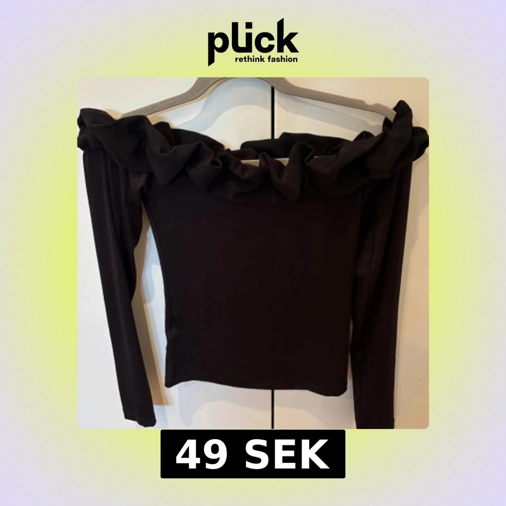 Svart offshoulder topp med volang i nyskick stl M. Köpare står för frakt🫶🏼