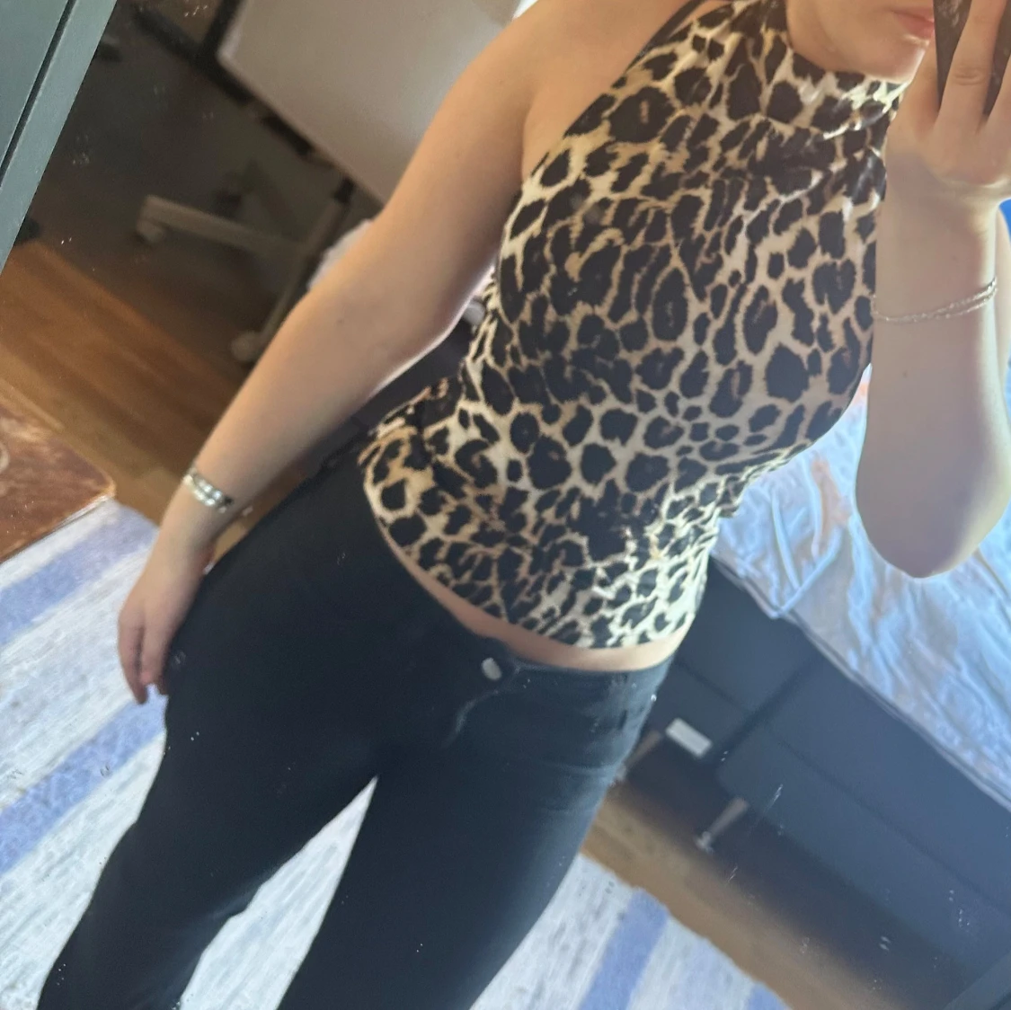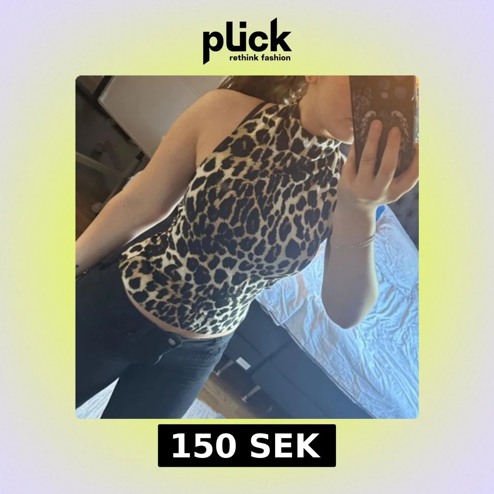 leopardmönstrad halterneck topp med hög hals och öppen rygg💕
