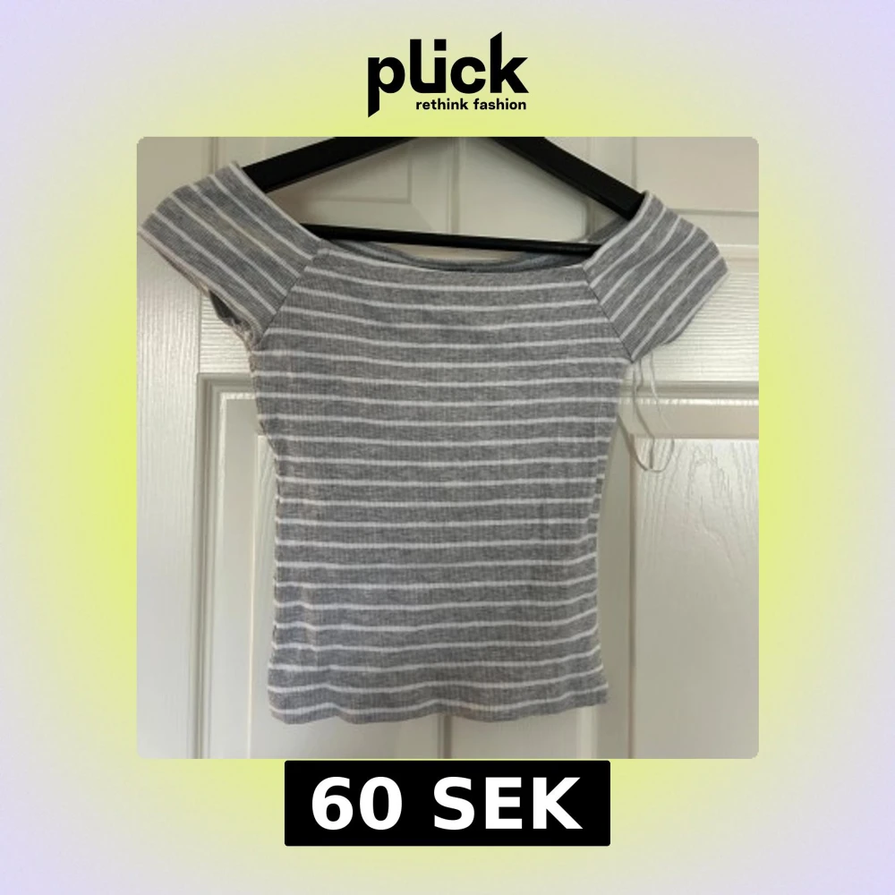 Hej jag säljer en grå och vit randig offshoulder topp från New yorker i storlek S. 💕