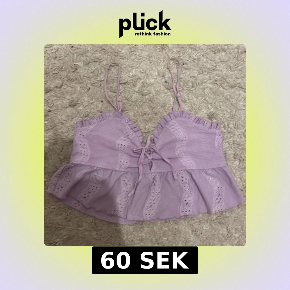 Söt lila linnetopp från Sister med spetsdetaljer och knytning framtill. Toppen har smala reglerbara axelband och en volangkant nedtill som ger en romantisk känsla. Perfekt för varma dagar eller sommarens fester.