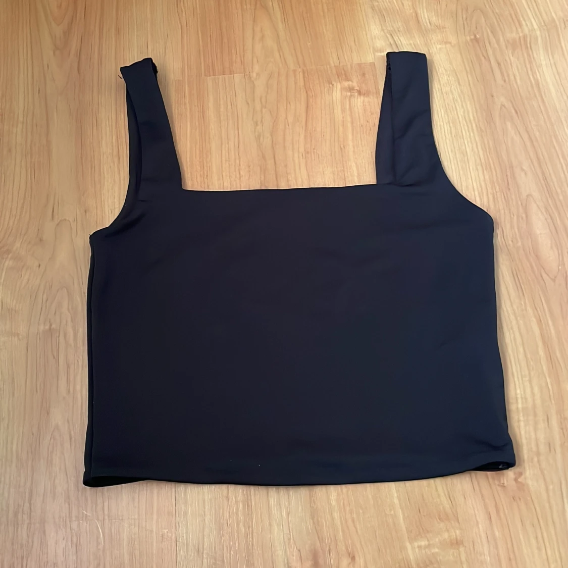 Snygg svart ärmlös topp med breda axelband. Perfekt för en stilren look. Passar bra till både jeans och kjol.