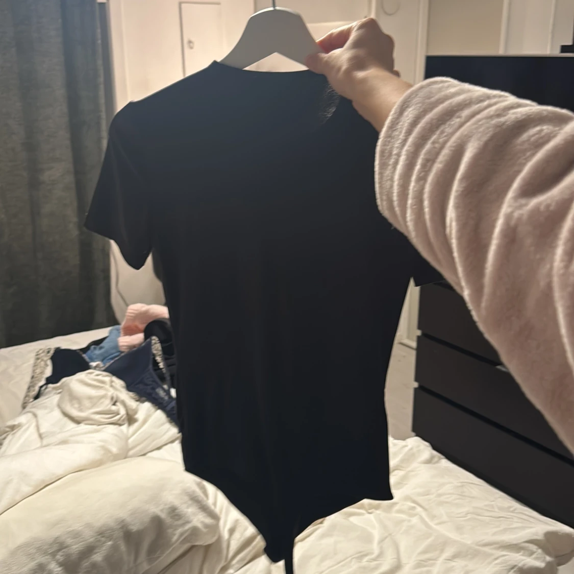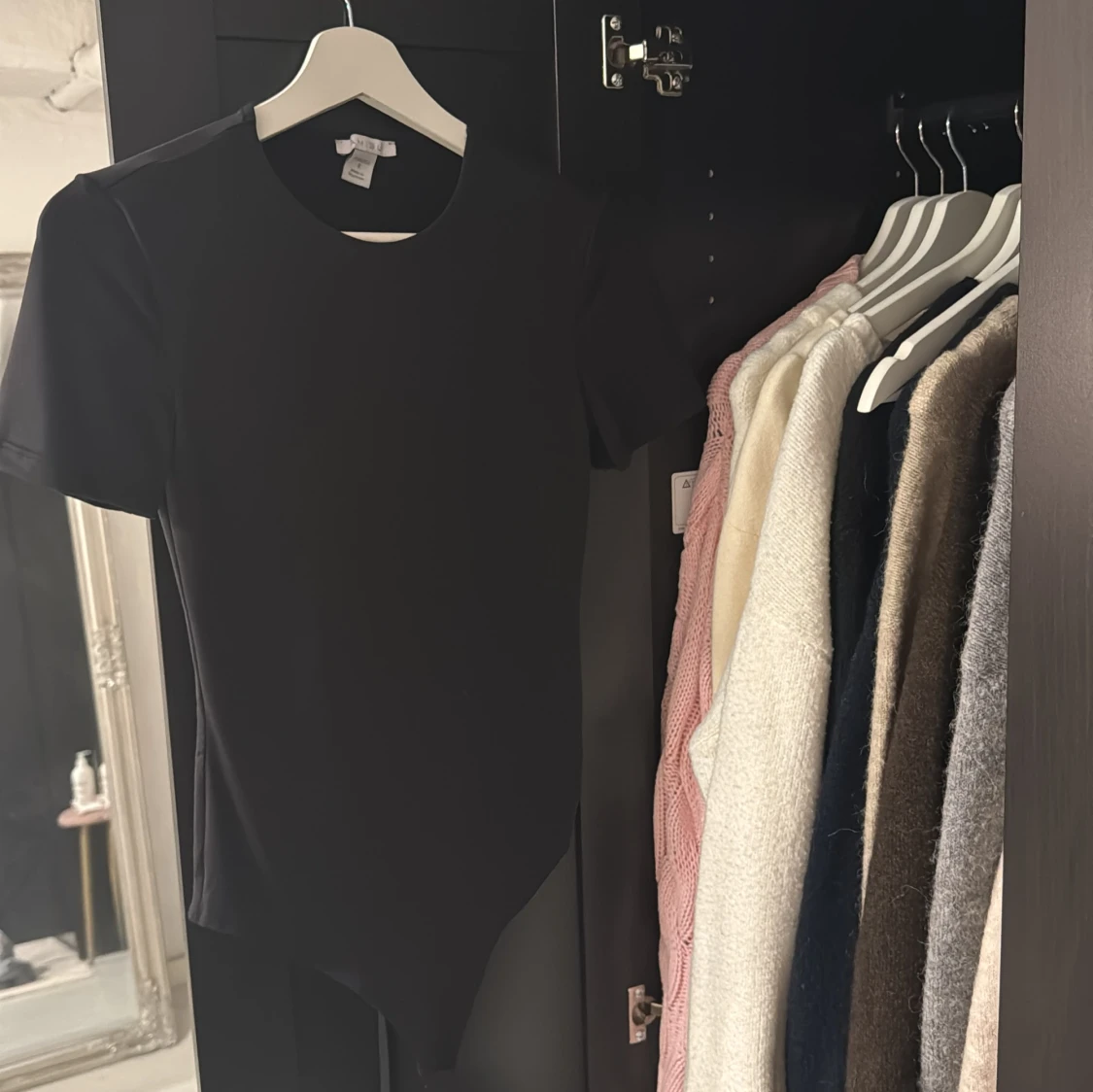 En svart, tight body med korta ärmar och rund halsringning. Gjord i stretchigt material som sitter snyggt mot kroppen. Perfekt att styla med jeans eller kjol för en clean look. Använd 2 gånger