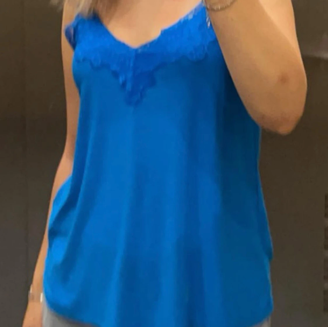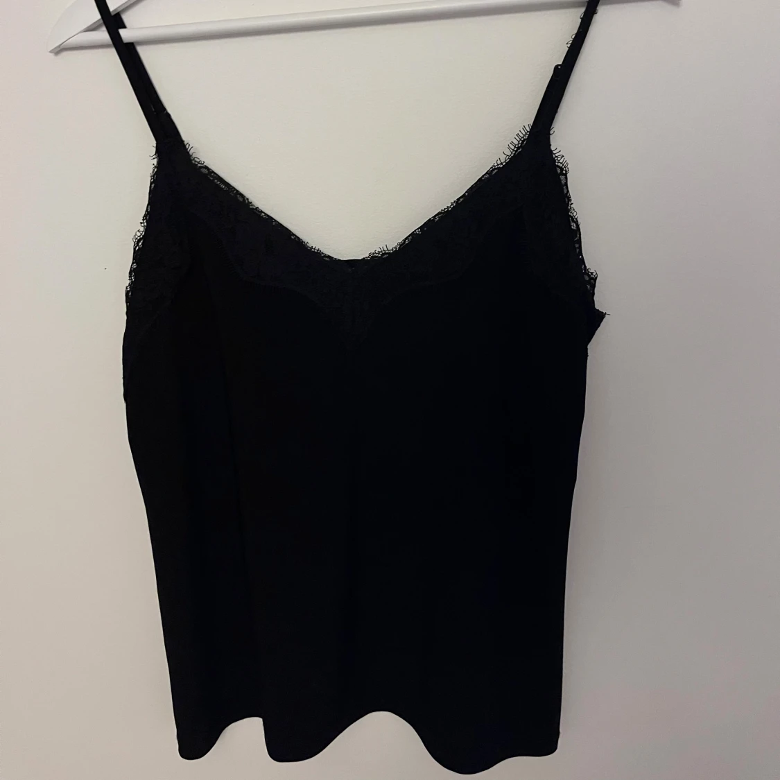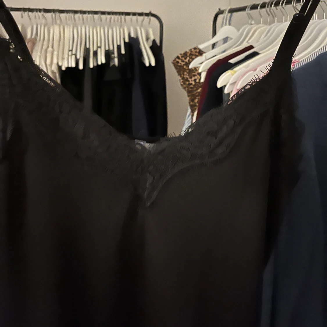 snygg linnetopp i svart med tunna axelband och spetsdetaljer längs v-ringningen. Perfekta för lager-på-lager eller att bära som de är. Toppens material känns mjukt och följsamt mot huden. det blå linnet är samma linne bara i annan färg men visar hur det sitter