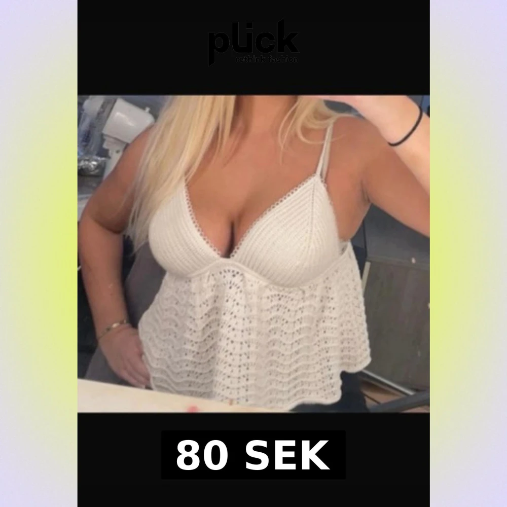 Supersöt virkad linnetopp i vitt med smala axelband och v-ringad front. Toppen har en croppad passform och knytning i ryggen för extra detalj. Perfekt till sommaren och ger en boho-vibe till din outfit.