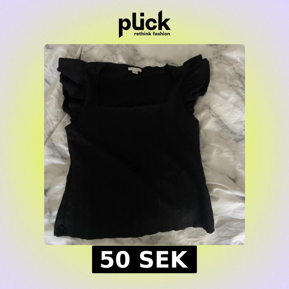 Säljer en svart topp från Amisu med fyrkantig ringning och volangdetaljer vid axlarna. Toppen är ärmlös och har en stilren, enkel design som passar perfekt till jeans eller kjol. Materialet känns mjukt och lätt mot huden.